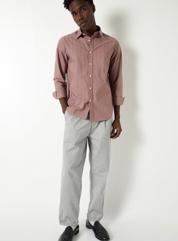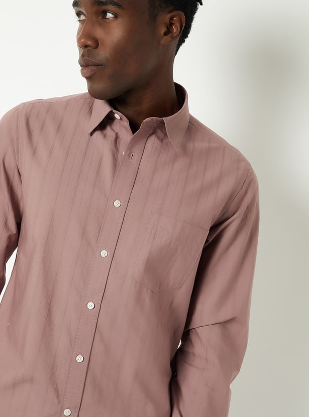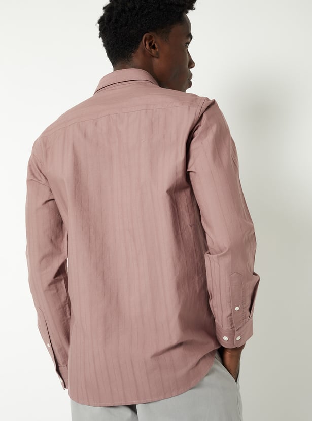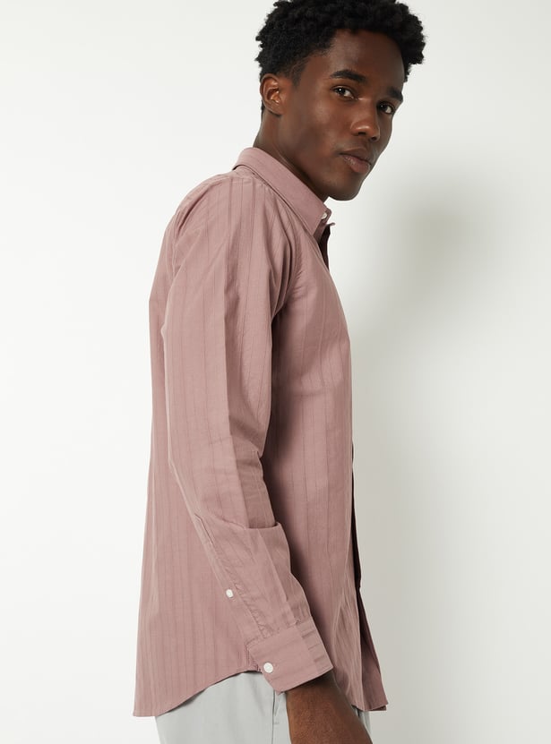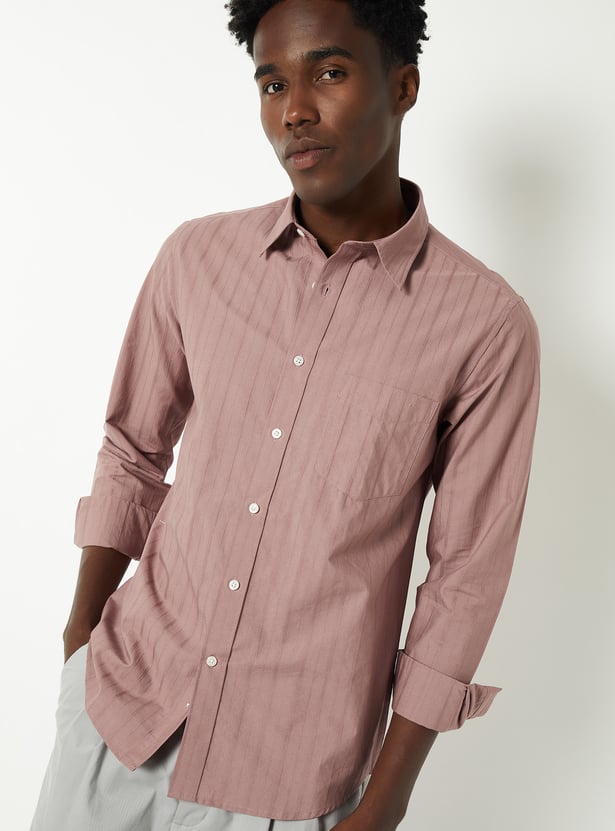 This striped shirt brings a timeless touch to your everyday style. It features a spread collar, button-down front, and cuffed full sleeves in a regular fit for all-day comfort and polish.