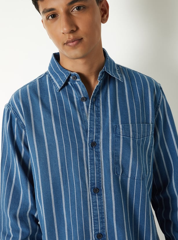 Elevate your wardrobe with this striped shirt. Featuring a spread collar, full sleeves, a button-down closure, and a single chest pocket, it offers a perfect blend of comfort and casual elegance.
