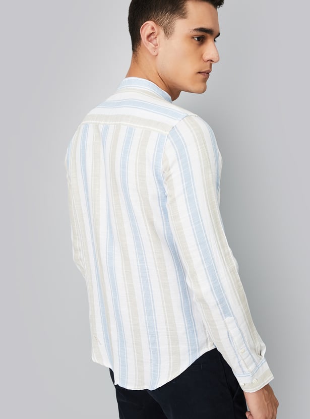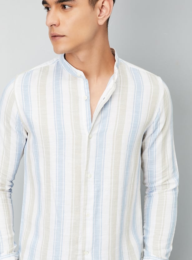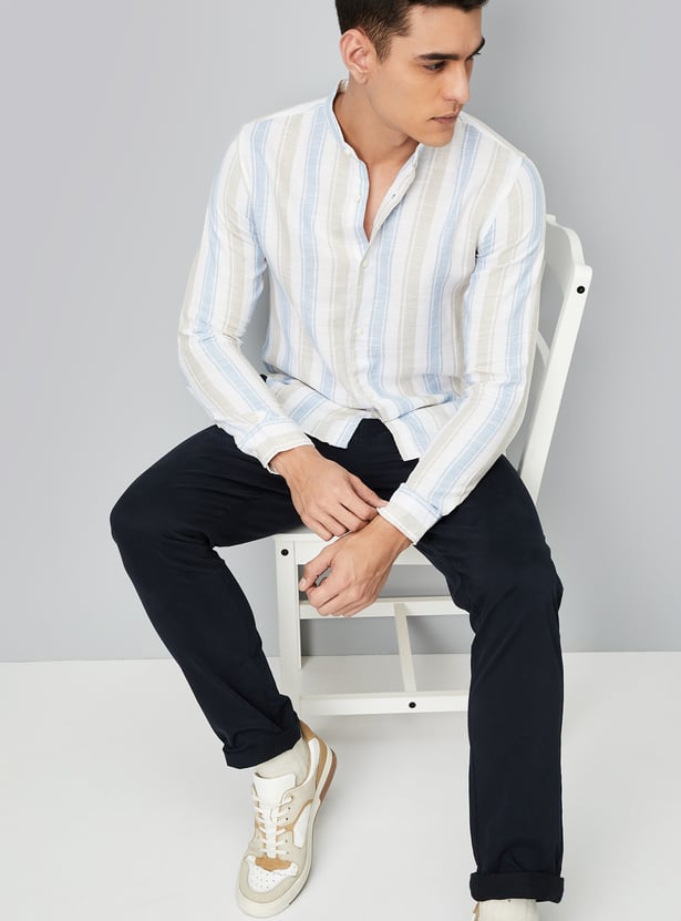 Men Striped Slim Fit Linen Shirt