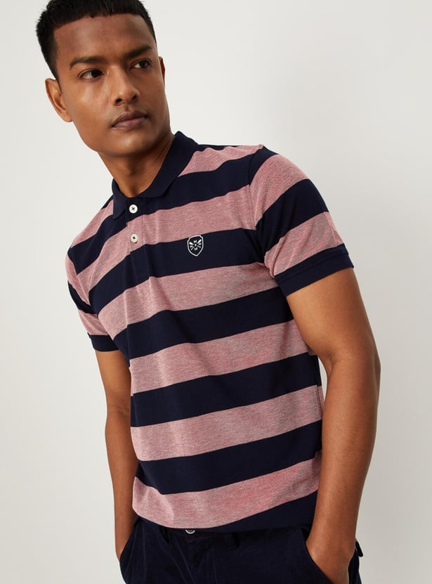 Men Striped Slim Fit Polo T-shirt