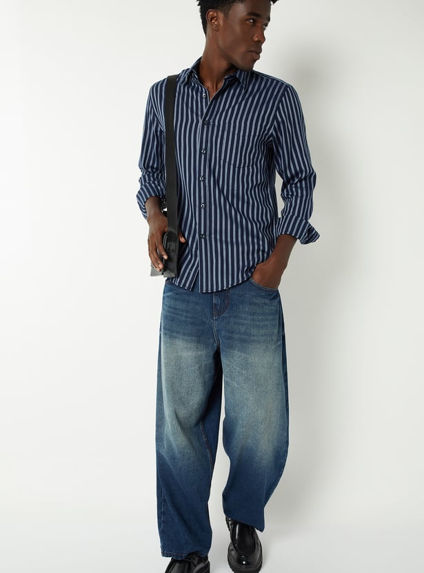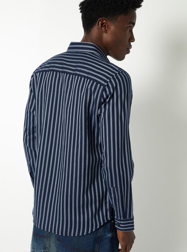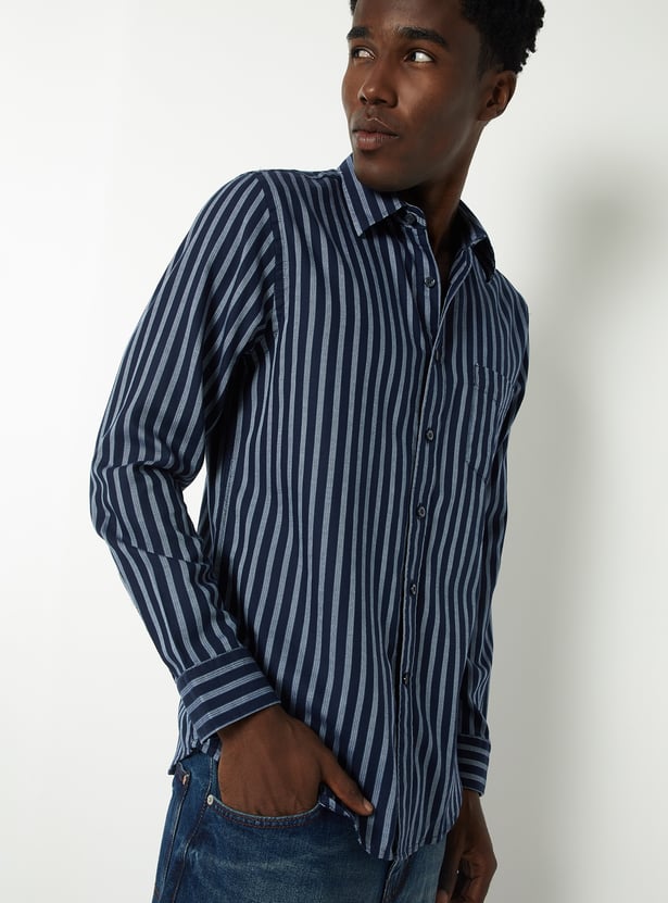 This striped shirt is a smart essential for versatile dressing. Designed with a spread collar, button-down front, full sleeves, and a slim fit, it offers a crisp, tailored look with a modern edge.