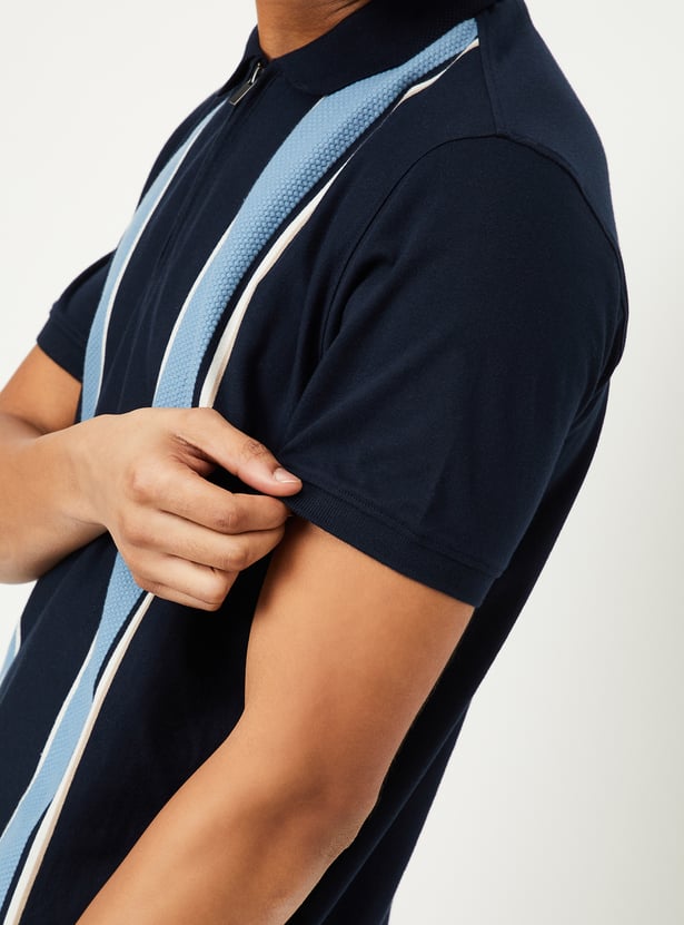 Men Striped Zipper Polo T-shirt