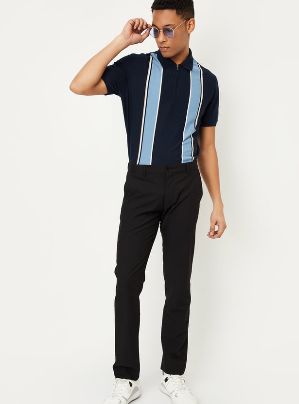 Enhance your style with this polo T-shirt, designed to make a statement with its bold stripes. Featuring a classic polo collar, half sleeves, and a sleek zipper closure, it adds a modern twist to your casual wardrobe.