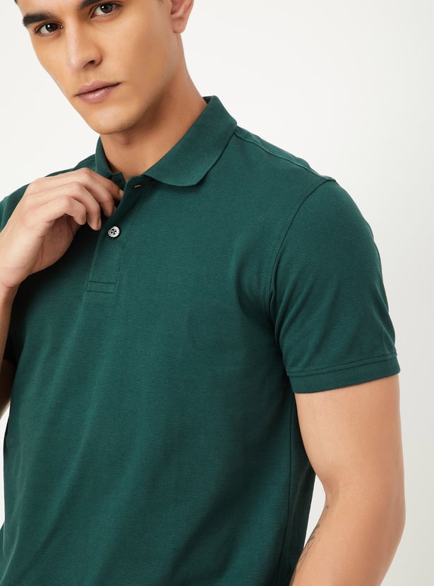 Men Textured Polo T-shirt