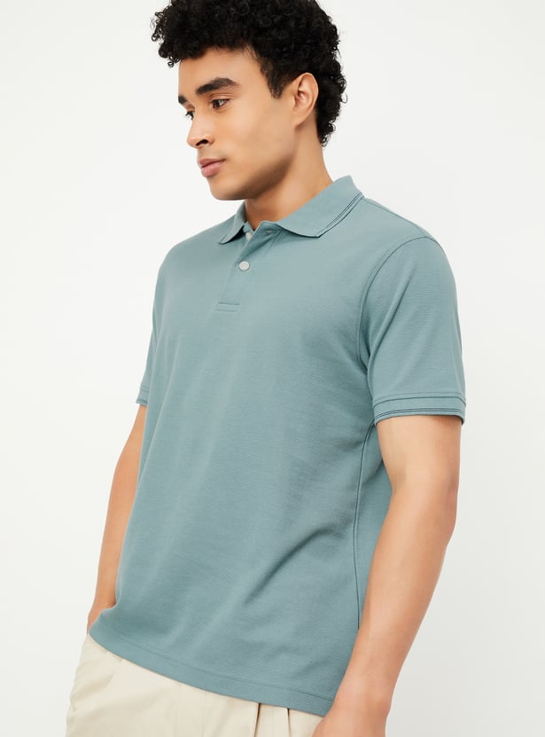 Men Textured Regular Fit Polo T-shirt