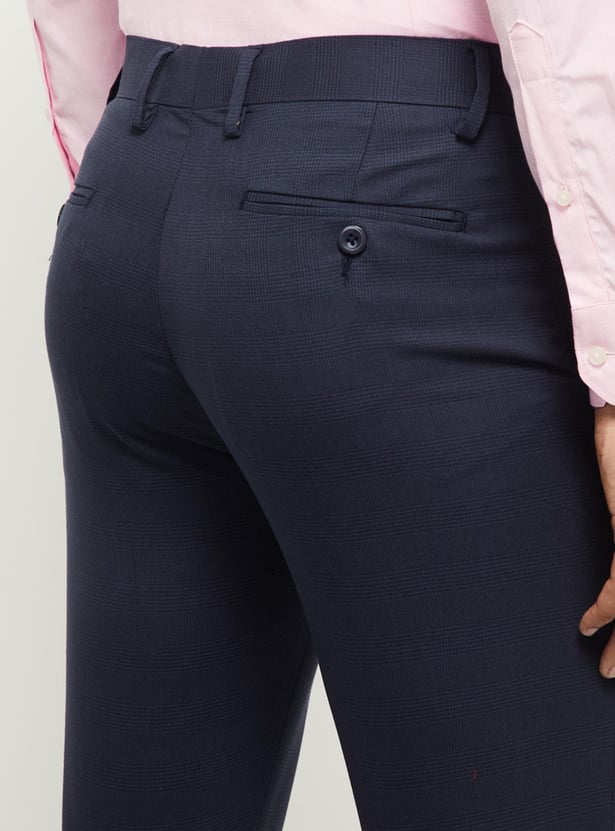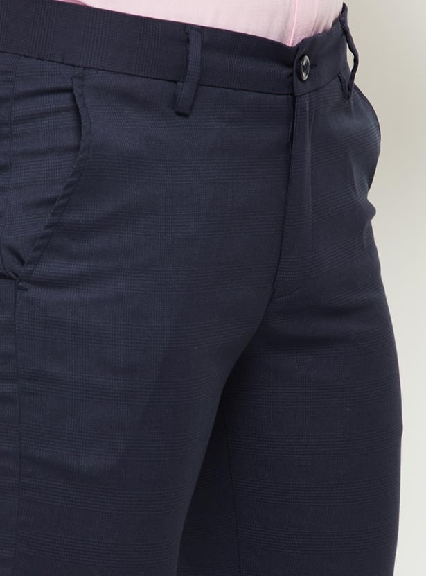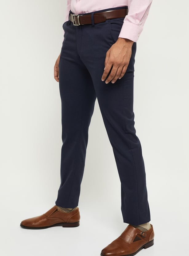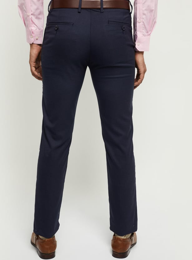 Men Textured Slim Fit Formal Trousers