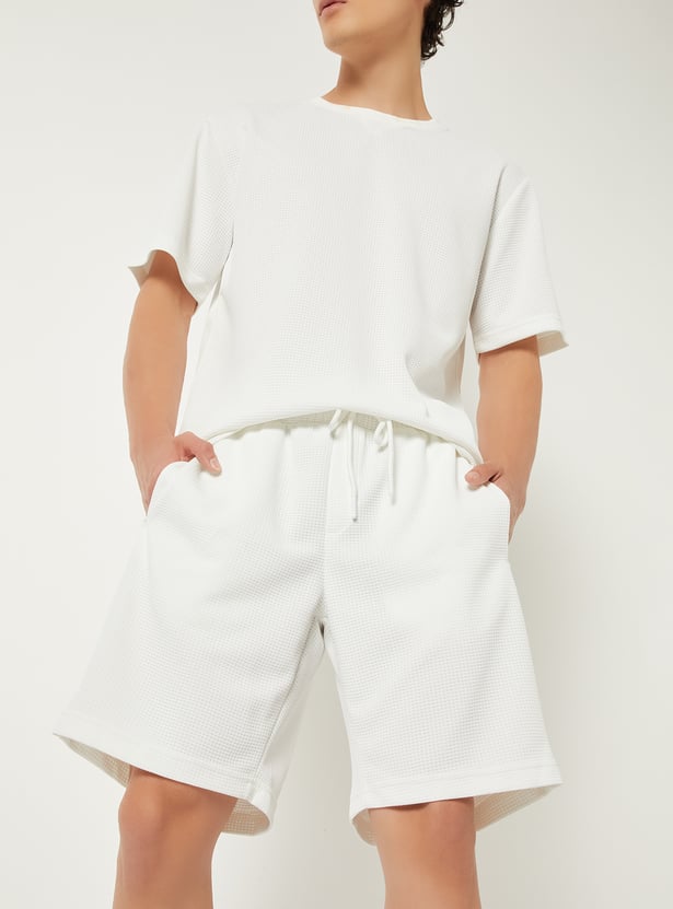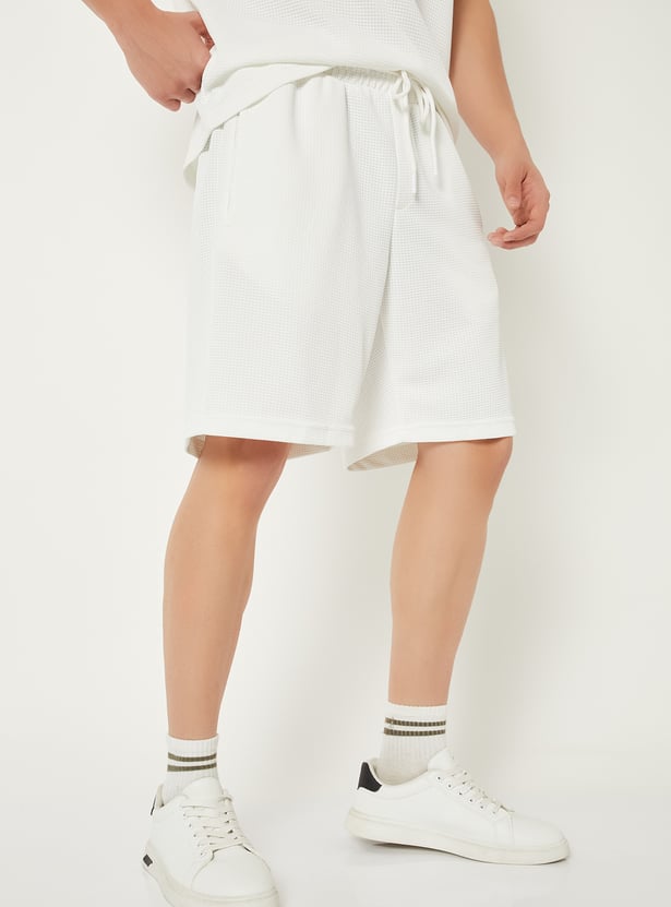 Stay comfortable and stylish with these textured sports shorts. Featuring a secure drawstring closure and functional pockets, they combine sporty utility with everyday ease.