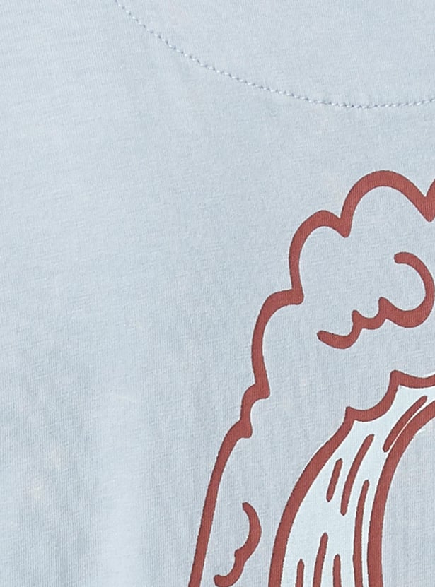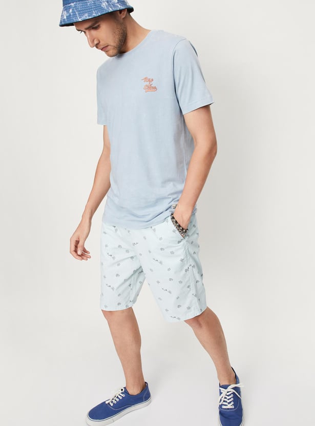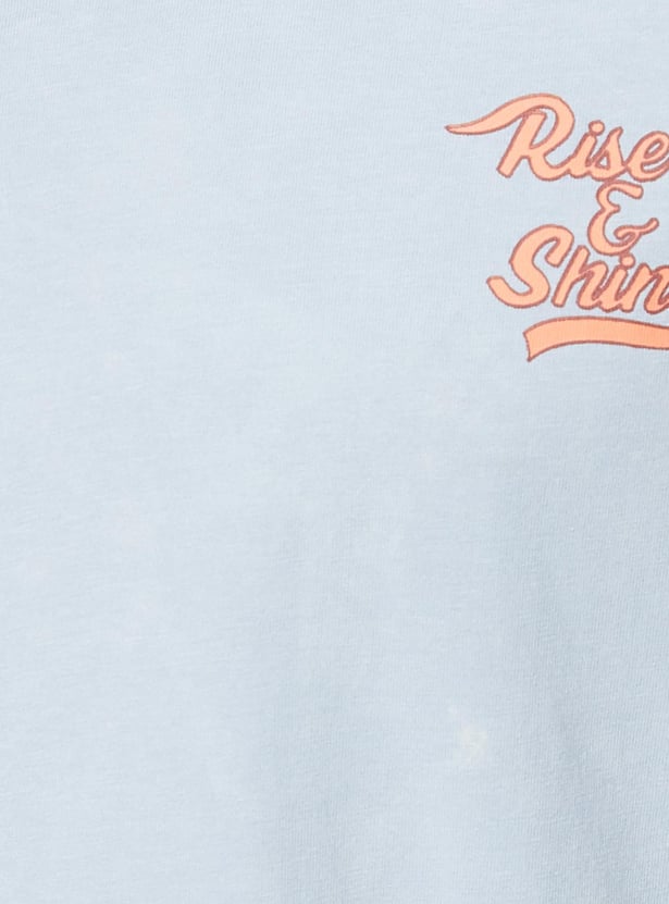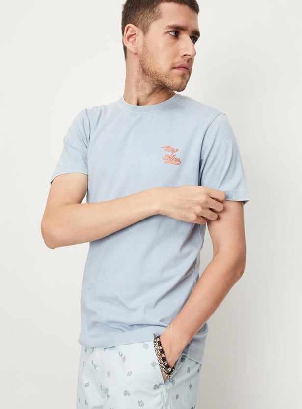 Spice up your wardrobe with this typographic printed T-shirt. It features a crew neck and half sleeves. Team it up with a pair of shorts and lace-up shoes to complete the look.