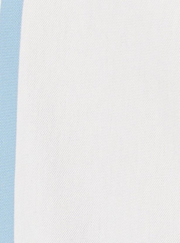 Smarten your outfit with this T-shirt highlighted with a vertical striped pattern and an embroidered chest. It features a polo collar, short sleeves, a slim fit profile, and side slits at the hem. Pair this tee with trousers and lace-ups to ace the look.