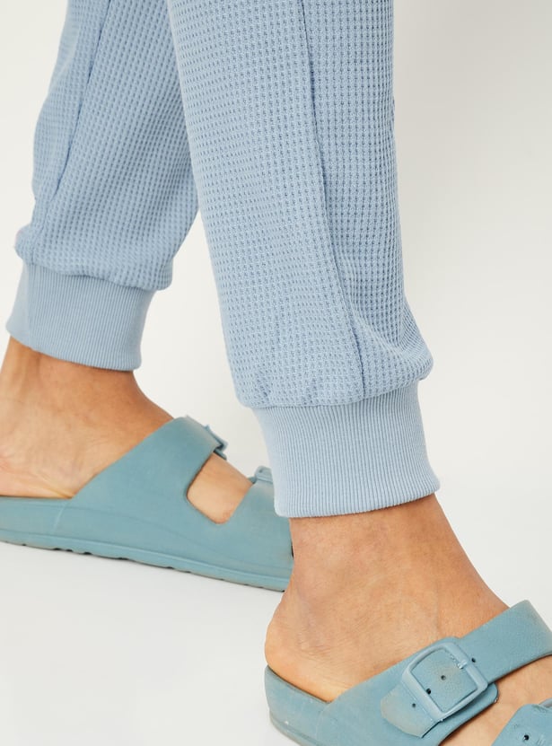 Lounge on weekends or unwind after a long day in the comfort of this pair of joggers. The waffle pattern lends a classic look. This pair is designed with a drawstring waist, insert pockets, and ribbed cuffs.