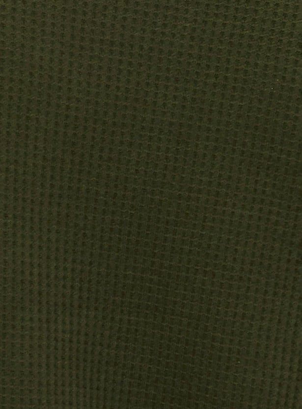 Lounge on weekends or unwind after a long day in this T-shirt. The waffle pattern lends a classic look. This is designed with a crew neck and half sleeves.