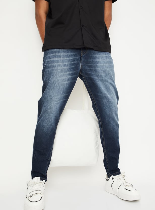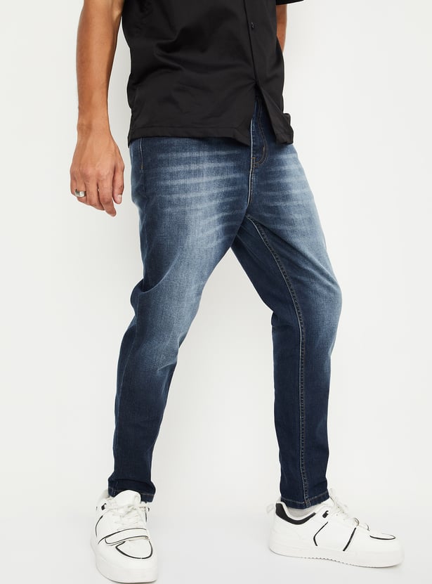 Bring effortless style to your wardrobe with these washed carrot-fit jeans. Featuring a mid-rise silhouette and a secure button closure, they offer a relaxed yet tailored fit with a contemporary washed finish for a cool, casual vibe.