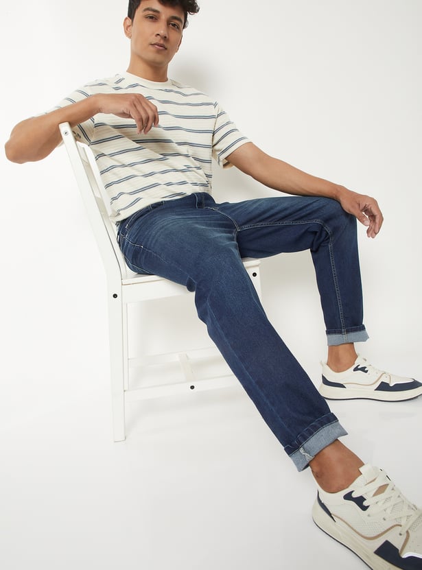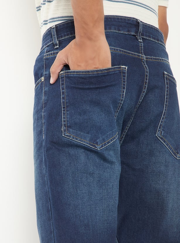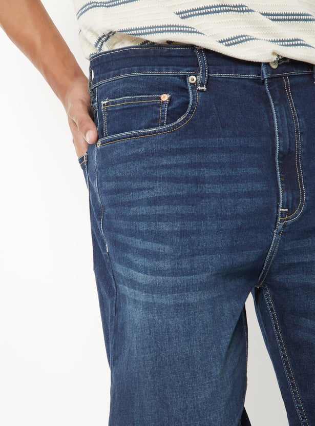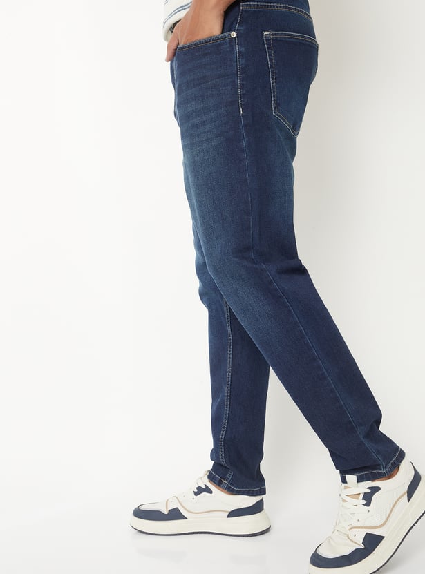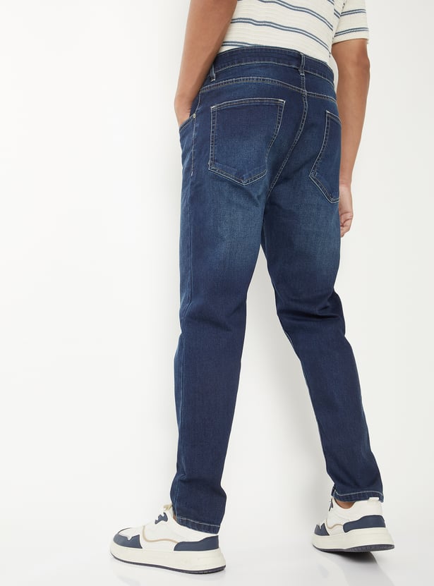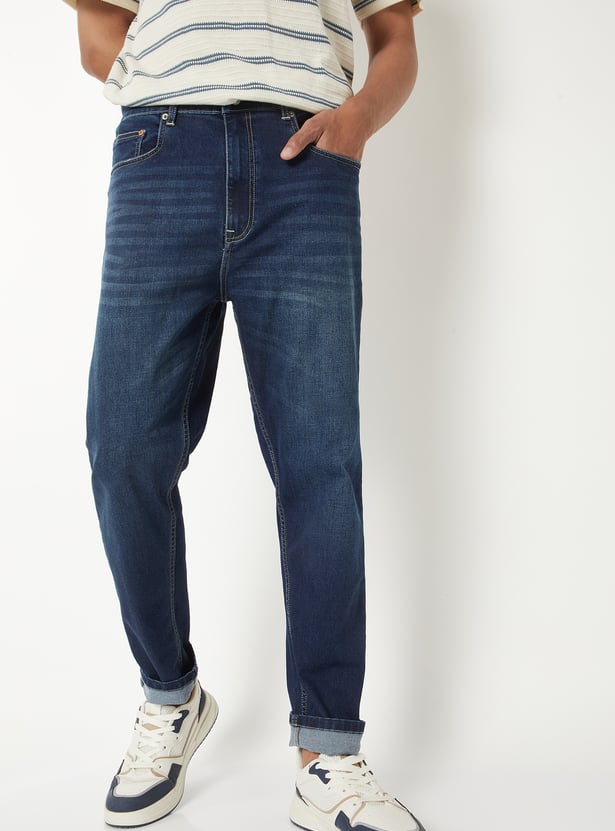 This pair of carrot-fit jeans is thoughtfully designed with a classic 5-pocket construction. They feature a practical button fly closure and washed detail.