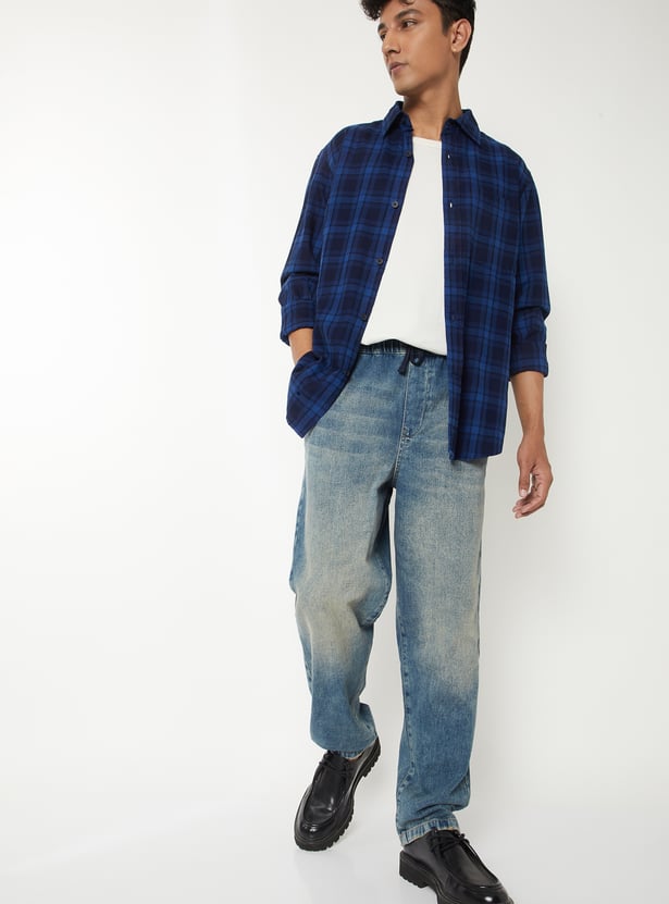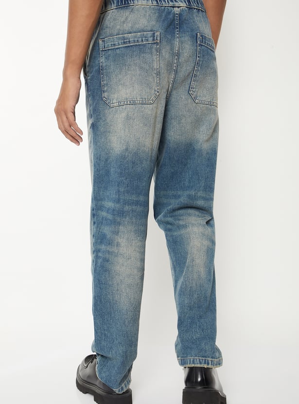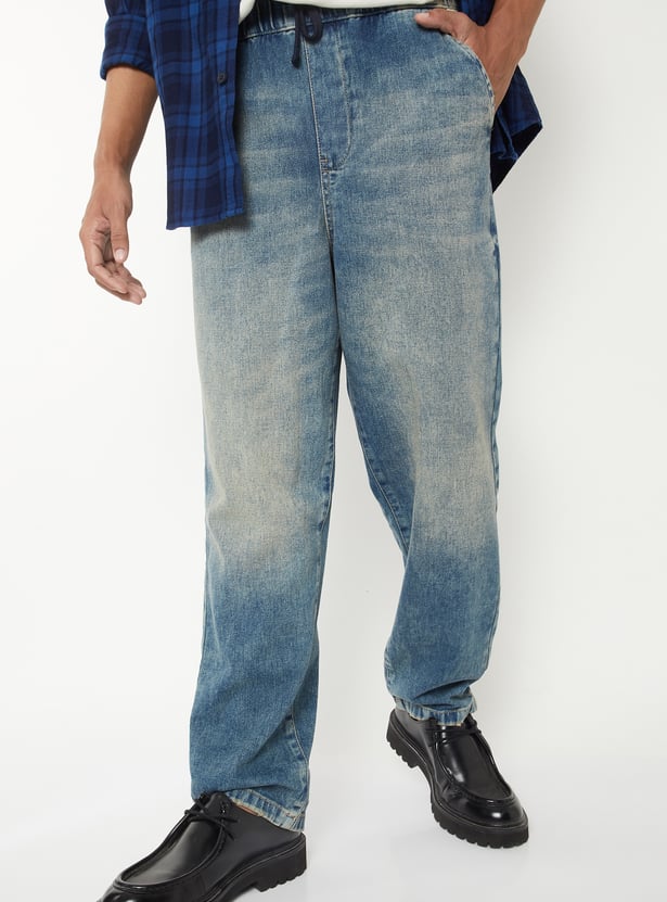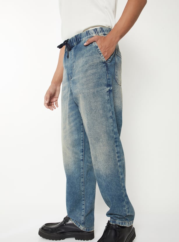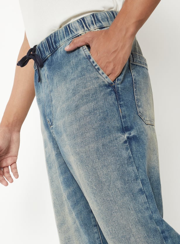 This pair of comfort-fit jeans is thoughtfully designed with a classic 4-pocket construction. They feature a practical drawstring closure and a washed detail.