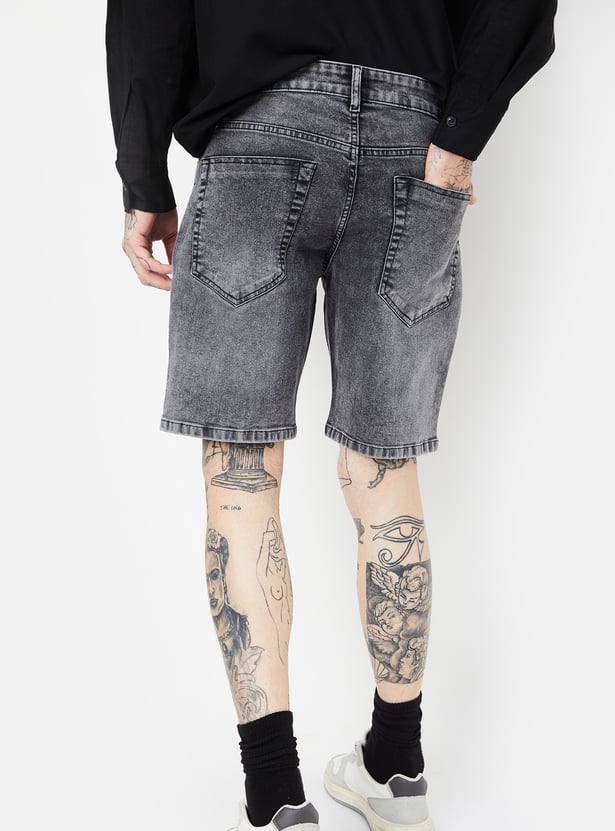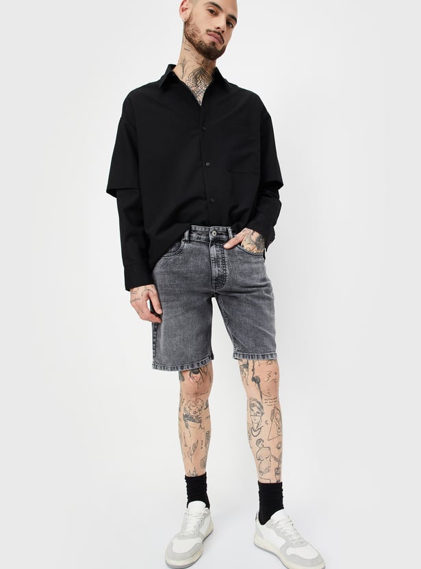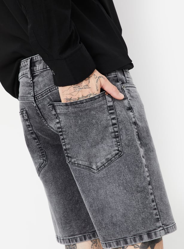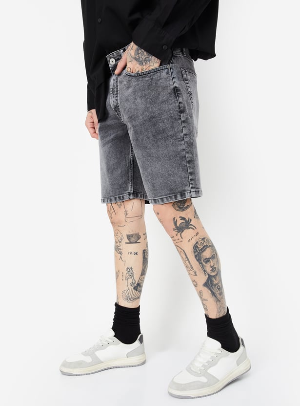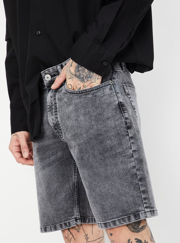 Level up your casual game with these washed mid-rise shorts, perfect for a cool and laid-back vibe. Featuring a classic 5-pocket design and a button closure, they’re as functional as they are stylish. The washed finish adds just the right amount of edge for effortless street style.