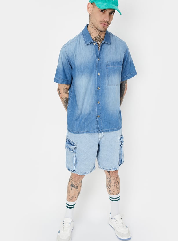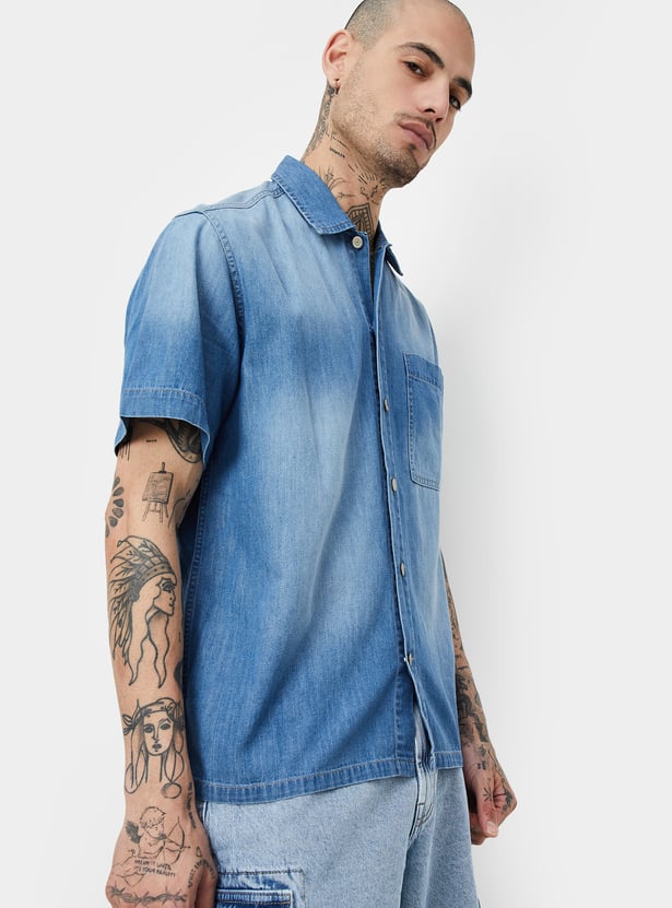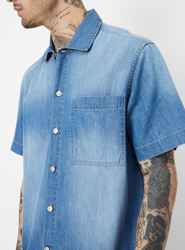 Men Washed Regular Fit Denim Shirt