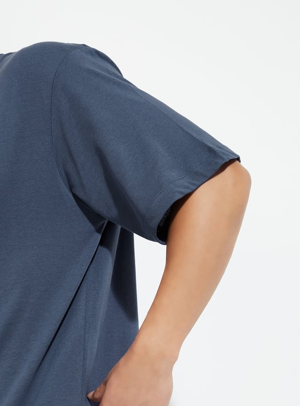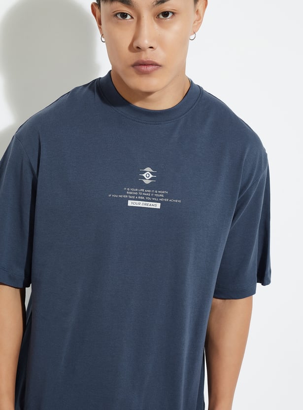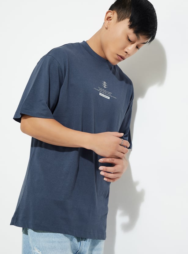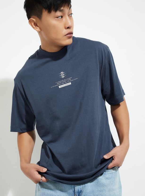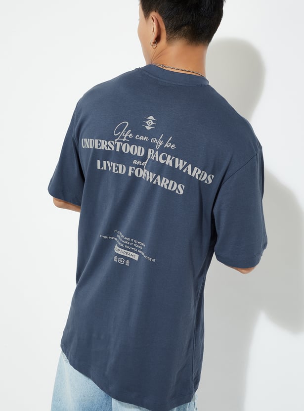 Chill in style with this effortlessly cool T-shirt. Featuring a classic crew neck and half sleeves, it showcases a bold back typographic print and a stylish chest print for an eye-catching touch.