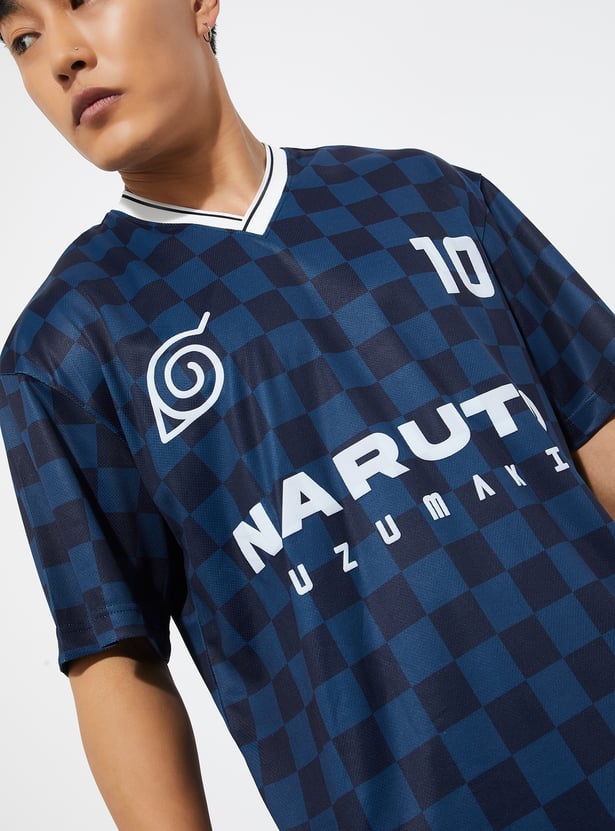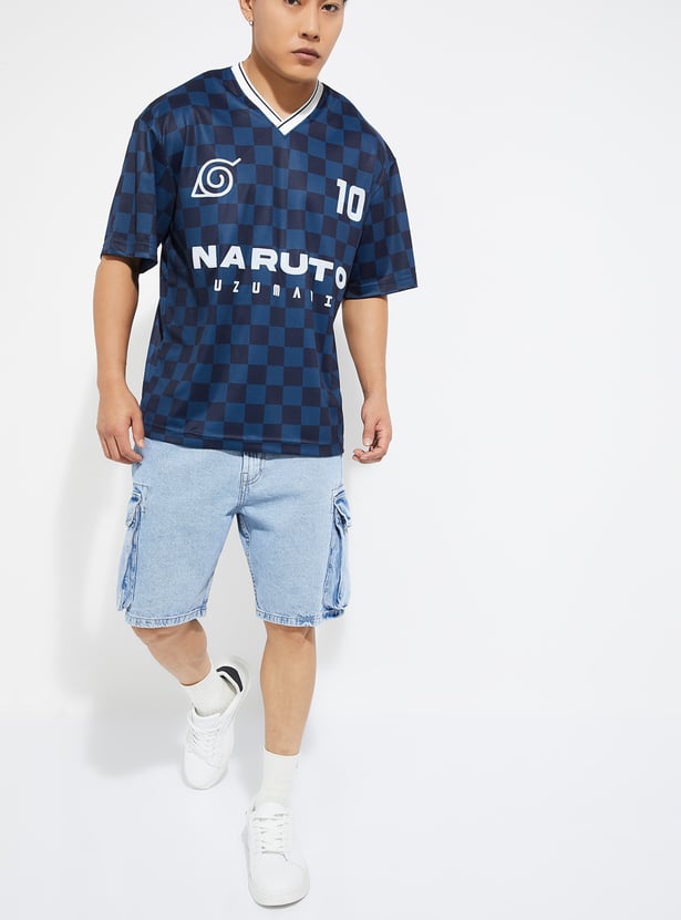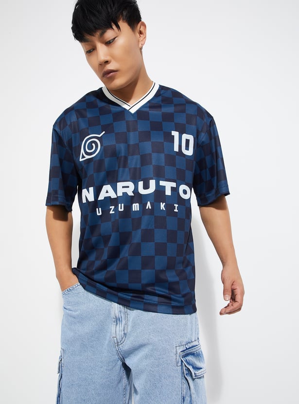 URB_N Men Naruto Checked Oversized T-shirt