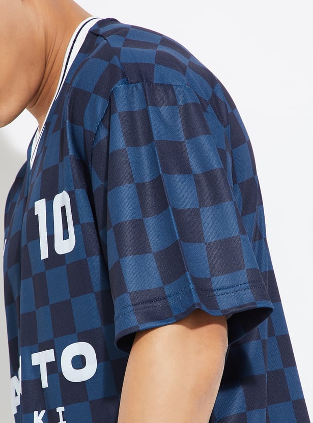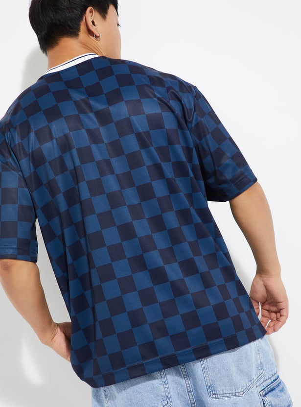 Stay laid-back in style with this checked oversized T-shirt, crafted with a V-neck and half sleeves for a relaxed, easygoing vibe.