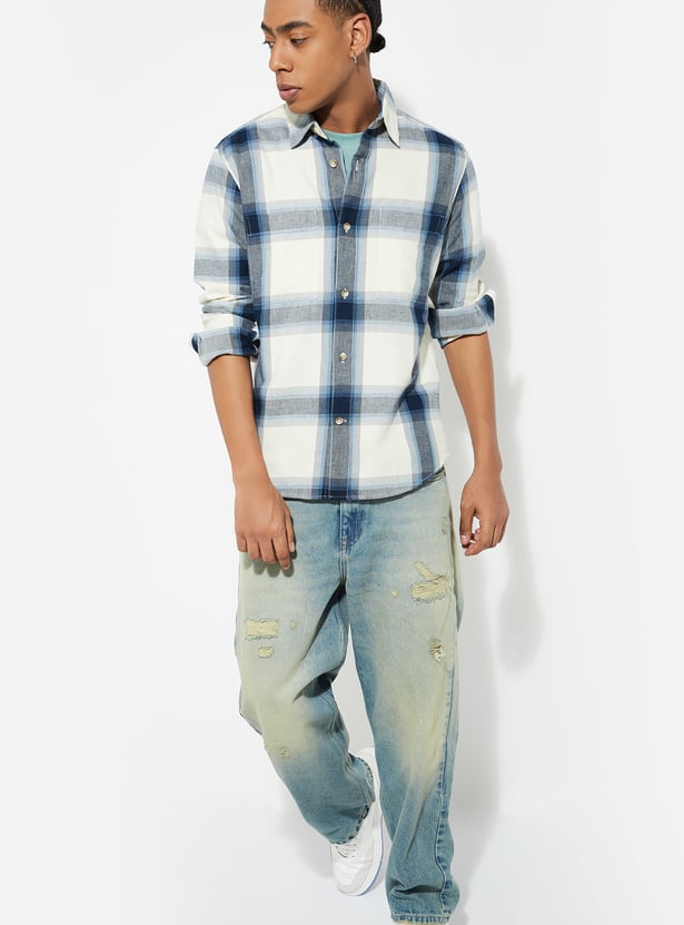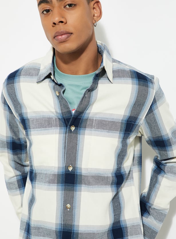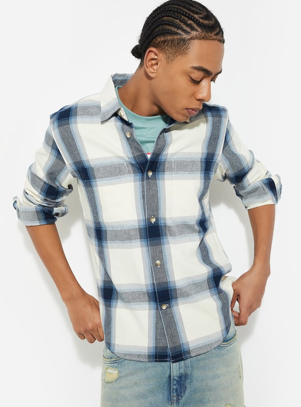 This checked regular-fit shirt is a wardrobe essential, offering a stylish spread collar, full sleeves with button cuffs, and a sleek button closure. Perfect for any occasion, its classic design keeps you looking sharp and comfortable all day long.