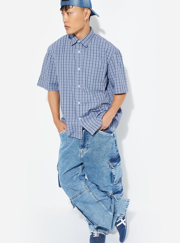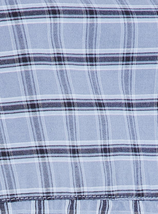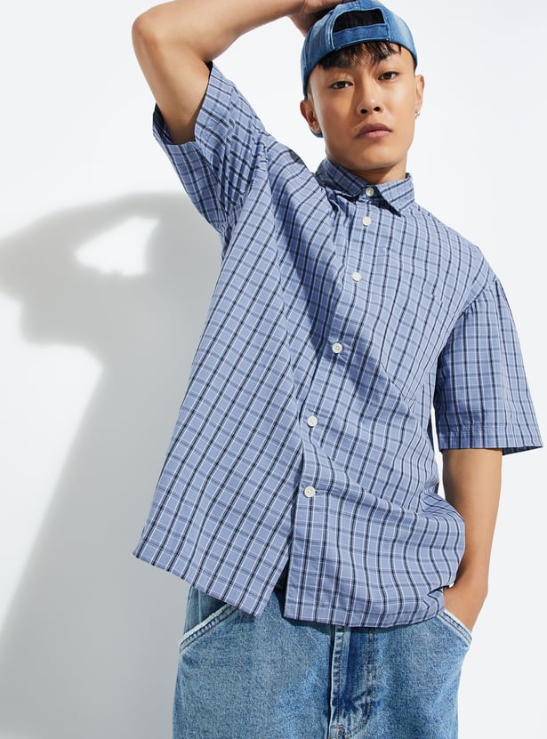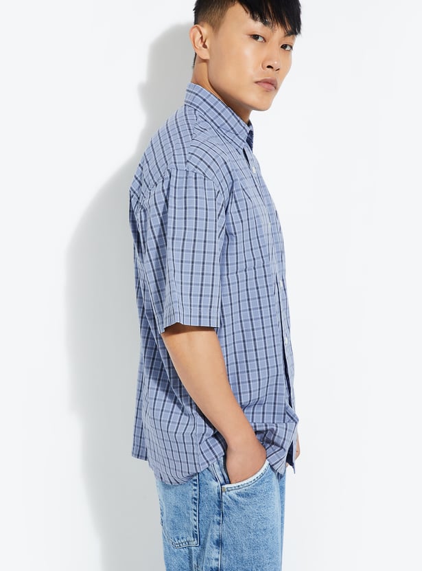 Easygoing and timeless, this checked relaxed fit shirt features a spread collar, button placket, and half sleeves—perfect for a casual yet polished look.