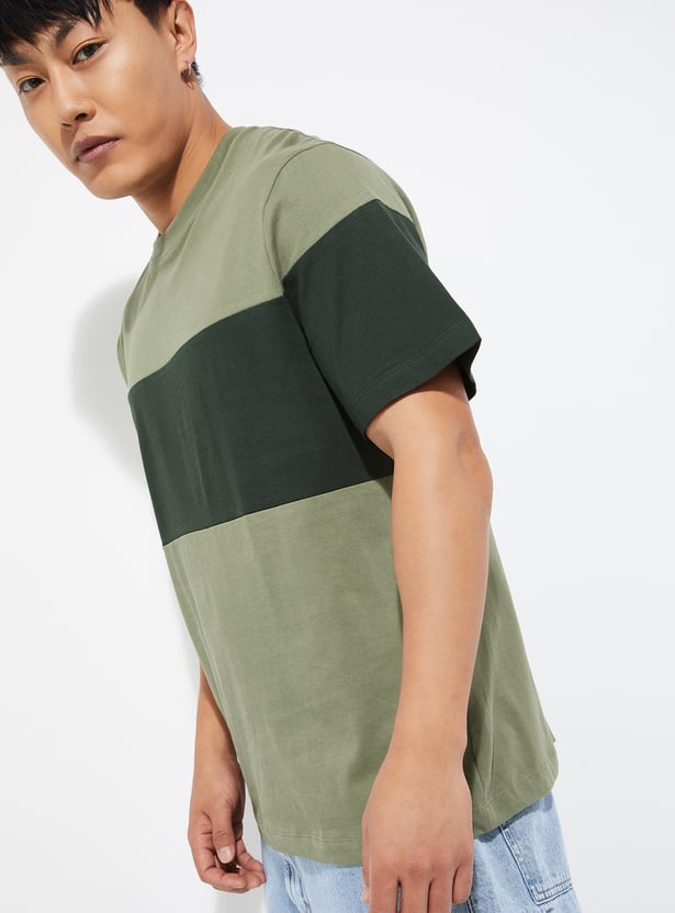 Add a pop of contrast to your casual wear with this colourblock regular fit T-shirt, featuring a crew neck and half sleeves. The bold design and comfortable fit make it a go-to choice for everyday style.
