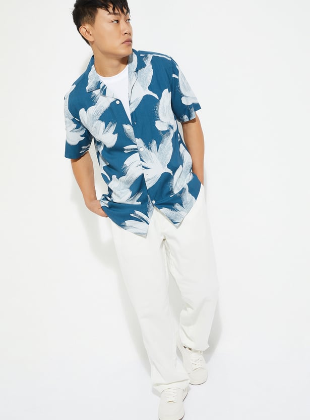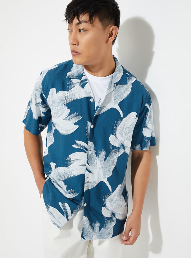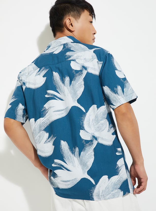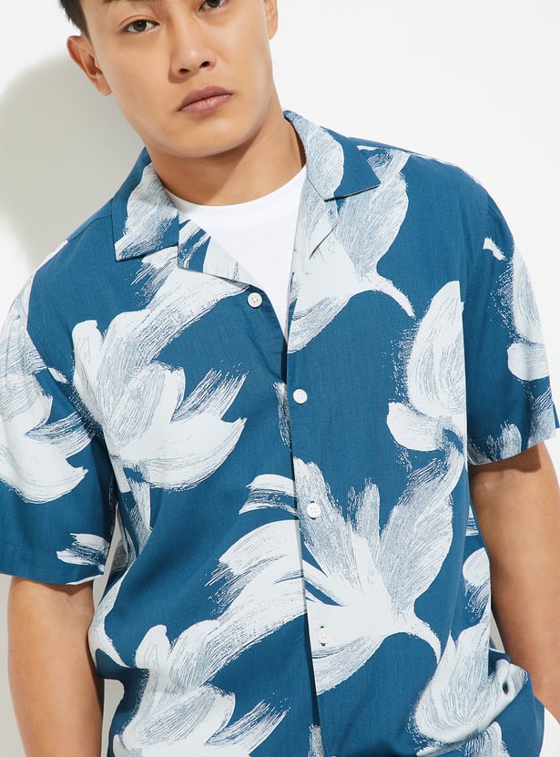 Add a relaxed tropical vibe to your casual wardrobe with this floral print shirt. Designed with a resort collar and half sleeves, it features vibrant floral prints for a laid-back look.