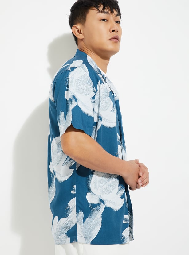 URB_N Men Floral Print Resort Collar Shirt