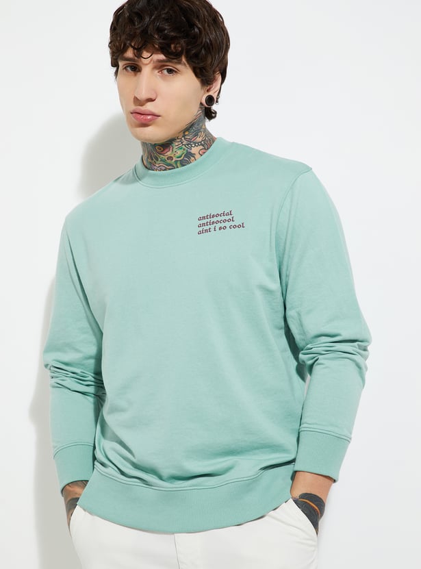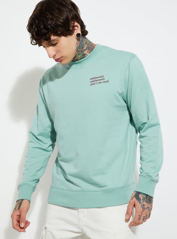 Stay warm and stylish with this knit sweatshirt, featuring a classic crew neck, full sleeves, and a ribbed hem for a snug, comfortable fit. A cozy essential for cooler days.