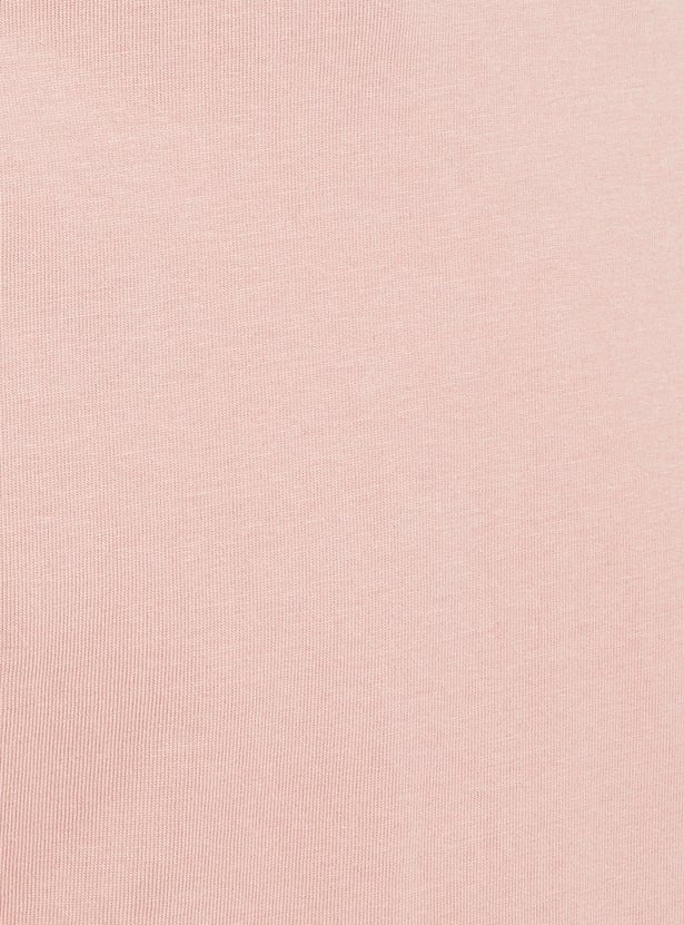 Elevate your casual wardrobe with this solid-finish T-shirt. It is designed with a classic crew neck, short sleeves, and an oversized profile. The faux layered trim elevates the style.