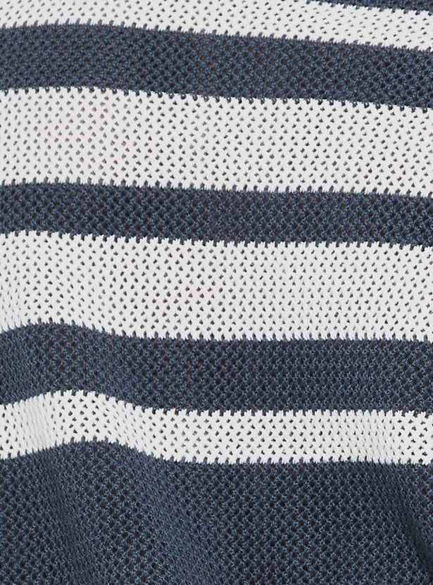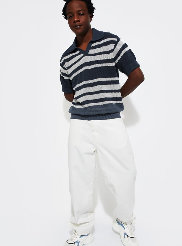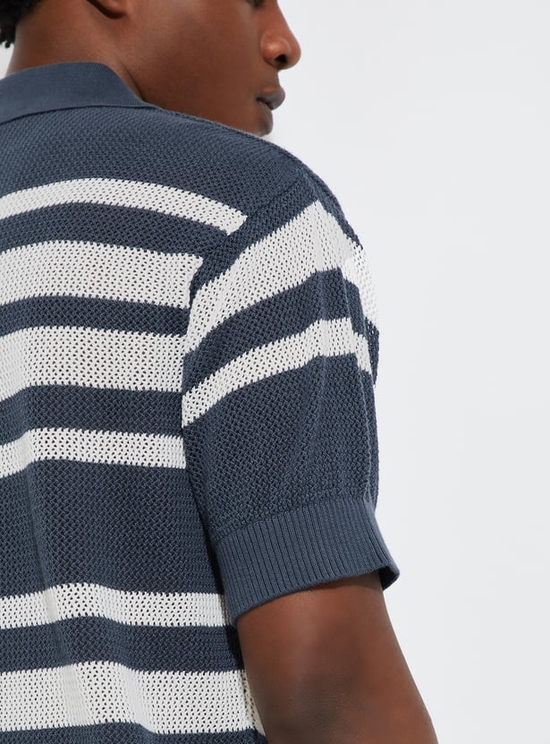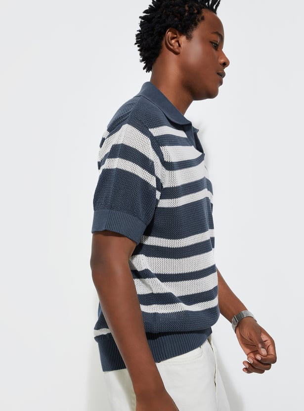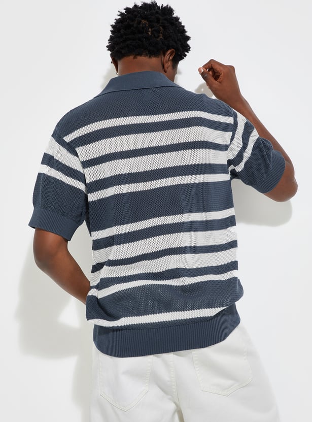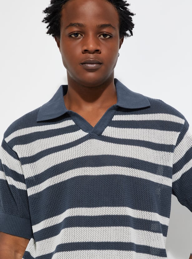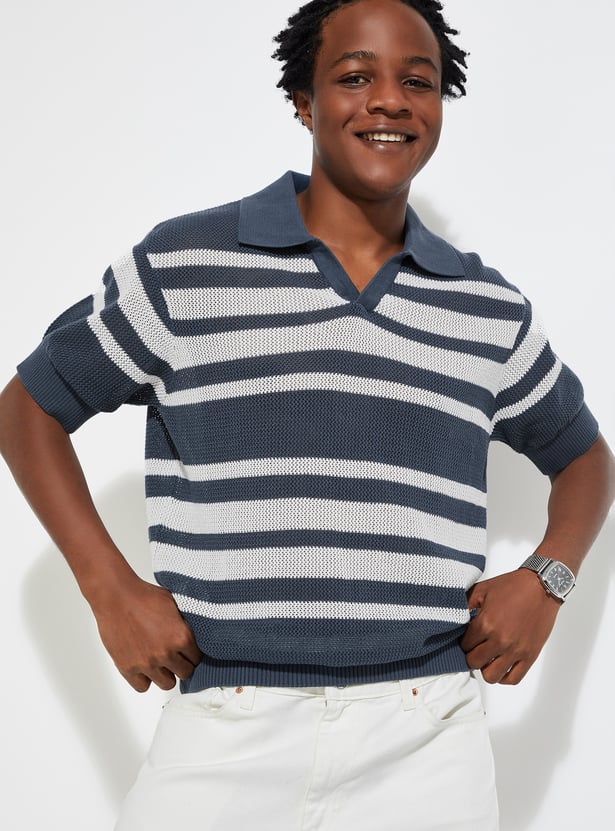 URB_N Men Oversized Striped Knit Polo T-shirt