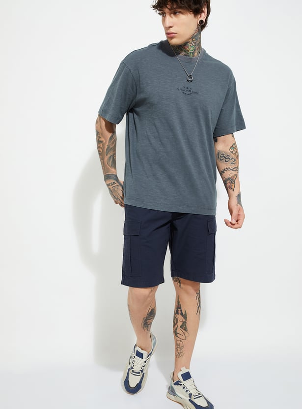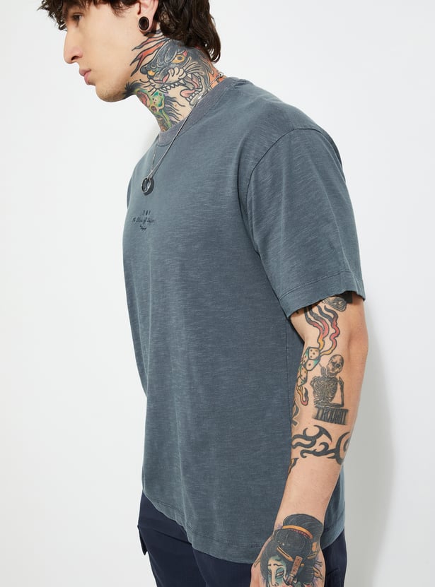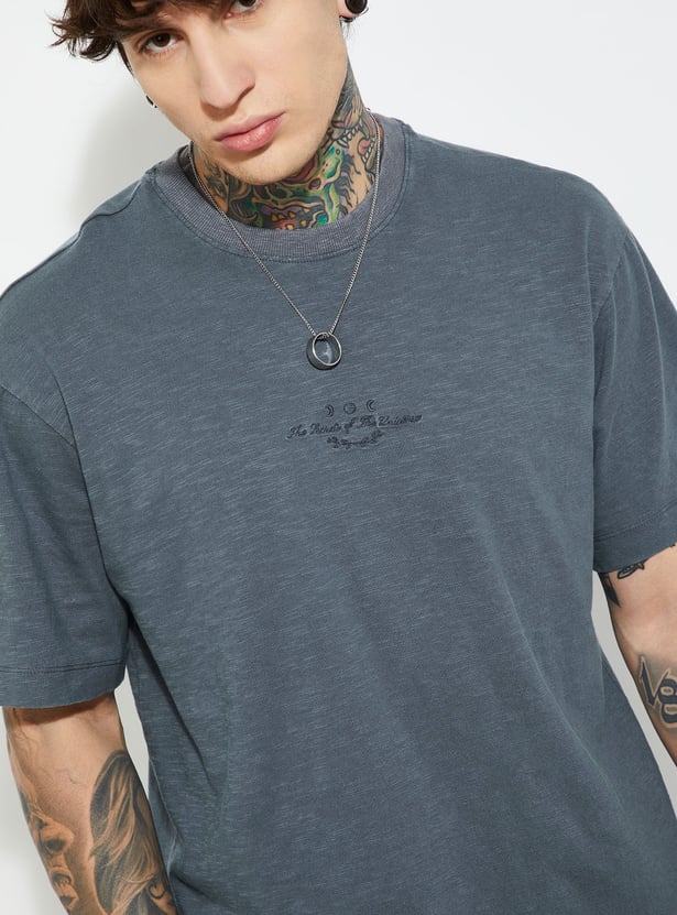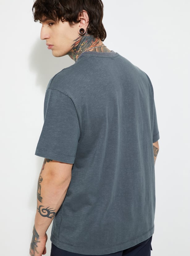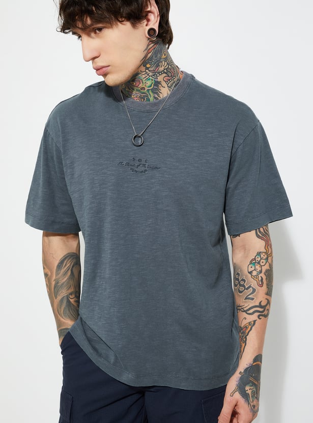 Add a pop of personality to your casual wardrobe with this textured oversized fit T-shirt. Featuring a classic crew neck and half sleeves, it's the perfect go-to for easy, everyday style.