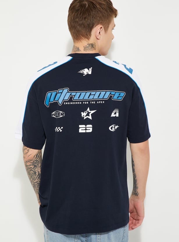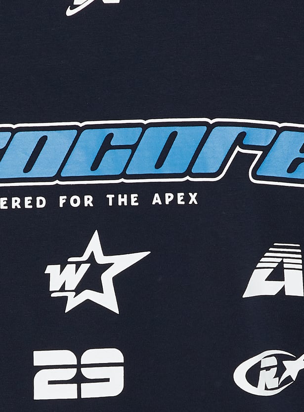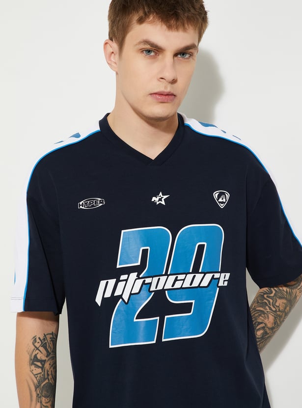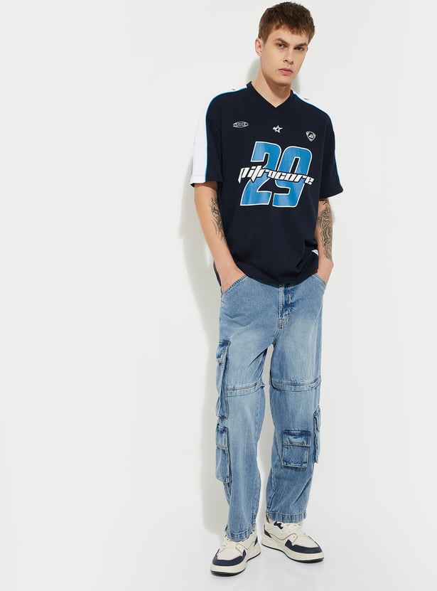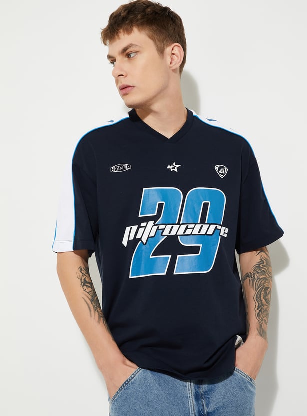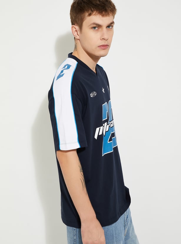 Keep it casual and trendy with this printed oversized t-shirt, designed for everyday comfort. Featuring a classic v-neck and half sleeves, it offers a relaxed fit with numeric prints, making it a versatile staple for your wardrobe.