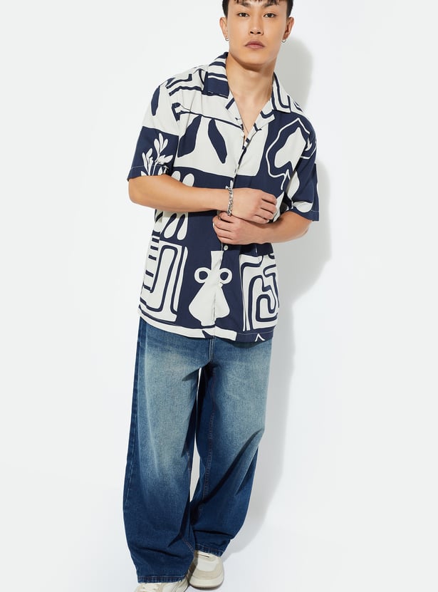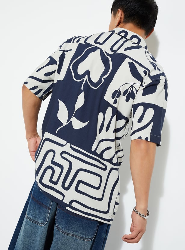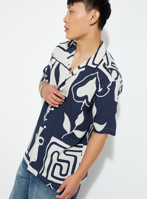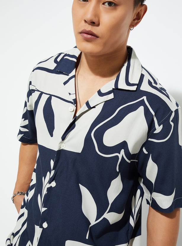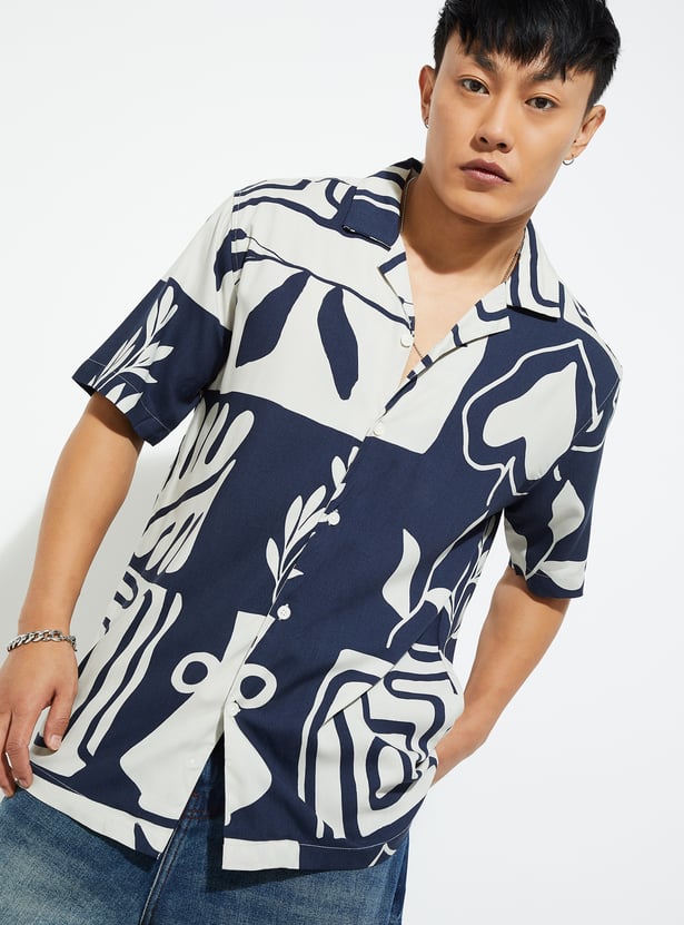 Infuse a breezy element of this printed shirt into your wardrobe. It has a resort collar, half sleeves, a button placket, and a straight hem to complement your next vacation.