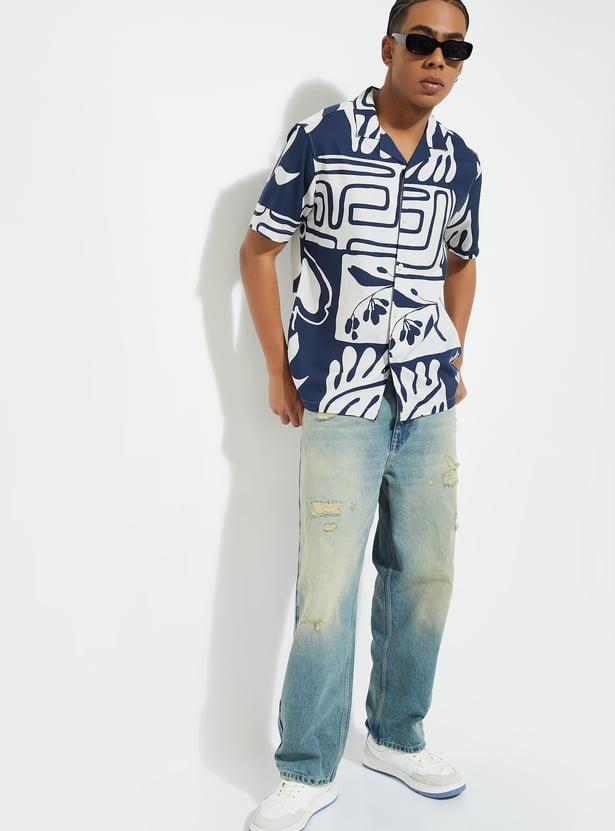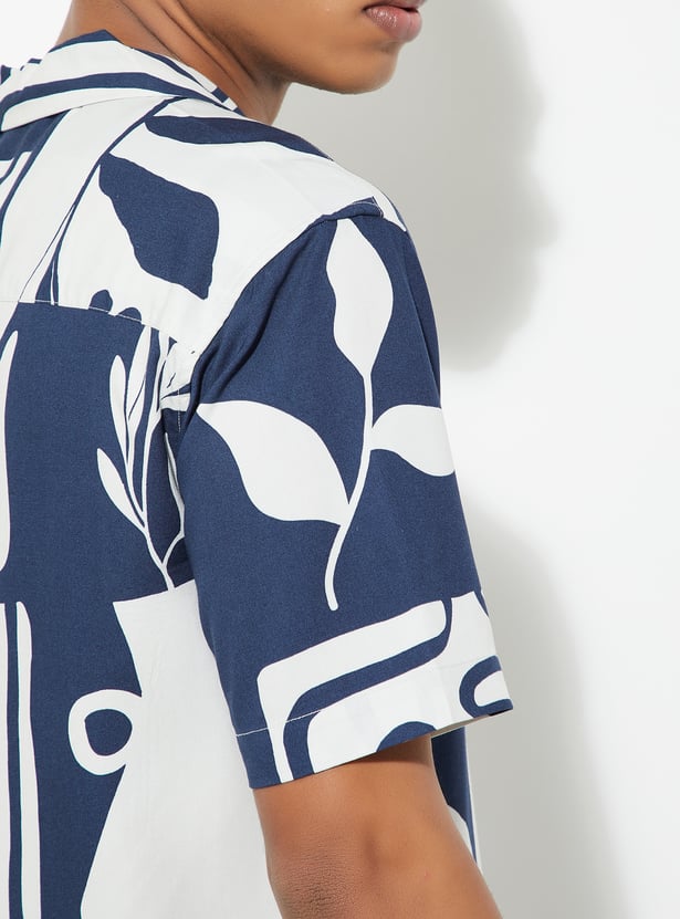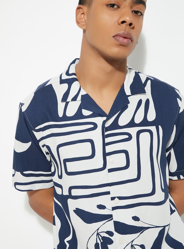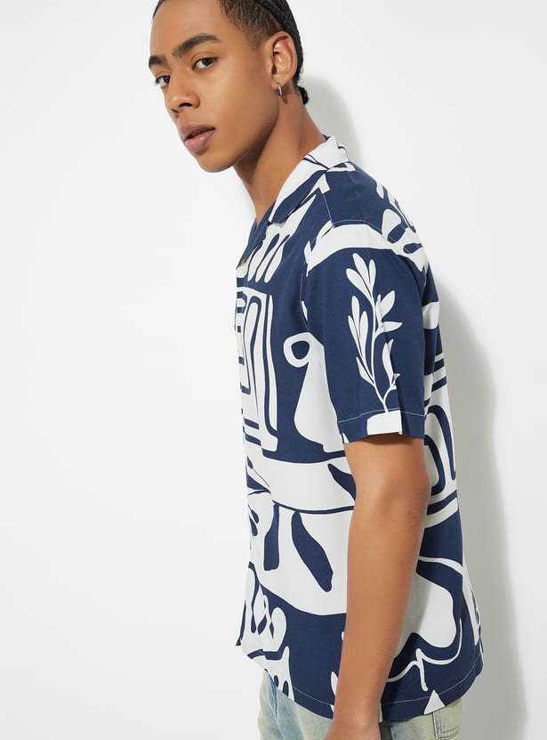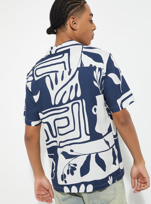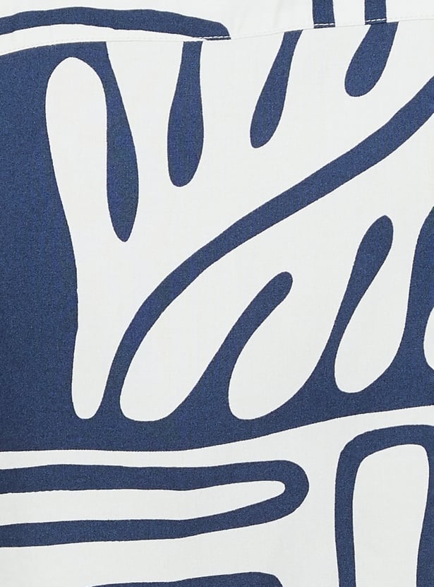 This printed regular fit shirt features a stylish resort collar and a button placket for a classic touch. With its half sleeves, it's perfect for warmer days, offering comfort and breathability. The unique print adds a fun, casual vibe, making it an ideal choice for both relaxed outings and casual events.