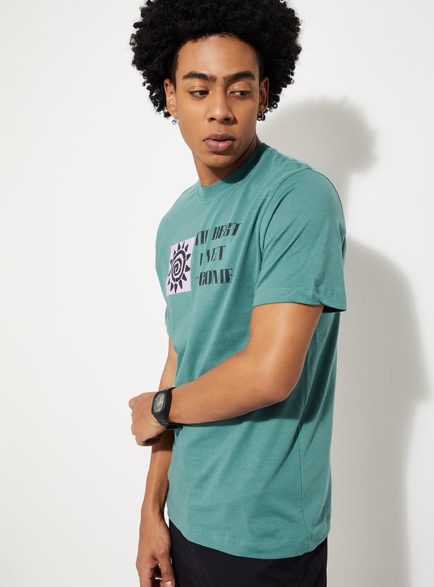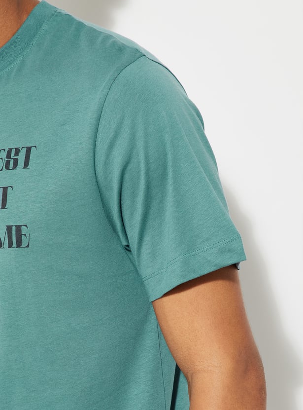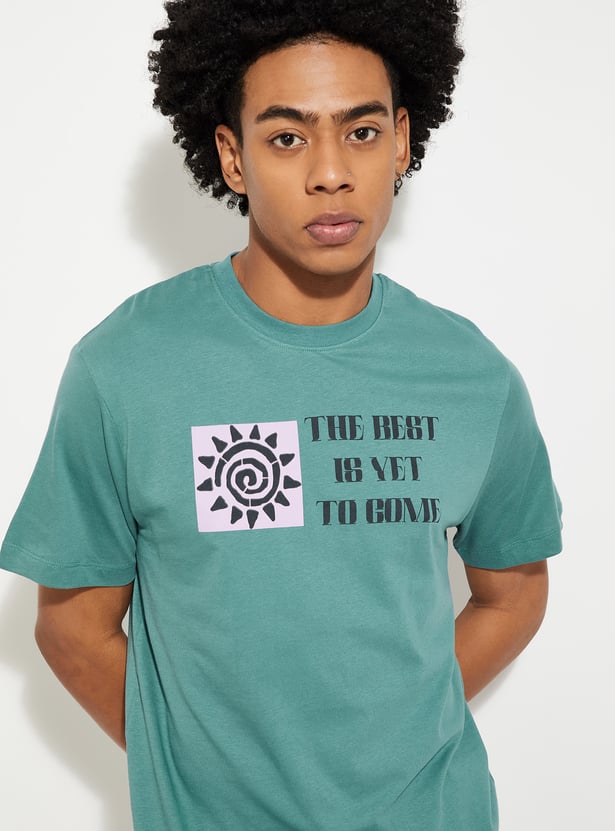This printed relaxed-fit t-shirt features a classic crew neck and half sleeves for a comfortable, laid-back look. The relaxed fit ensures all-day comfort, making it a perfect go-to piece for casual outings or relaxed days at home.