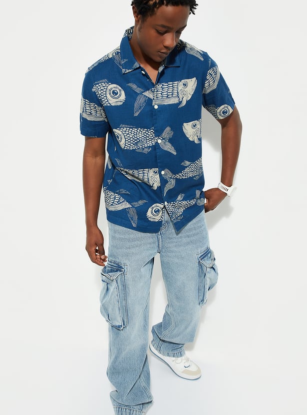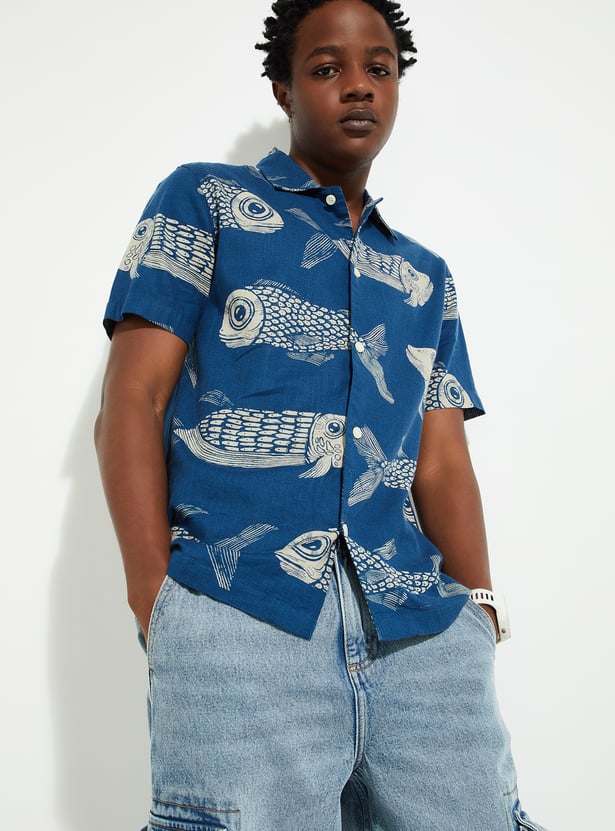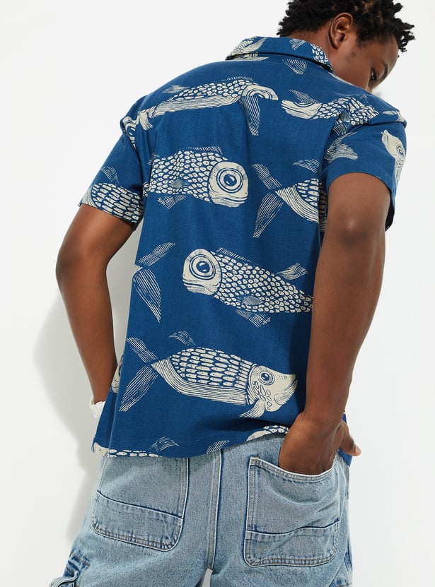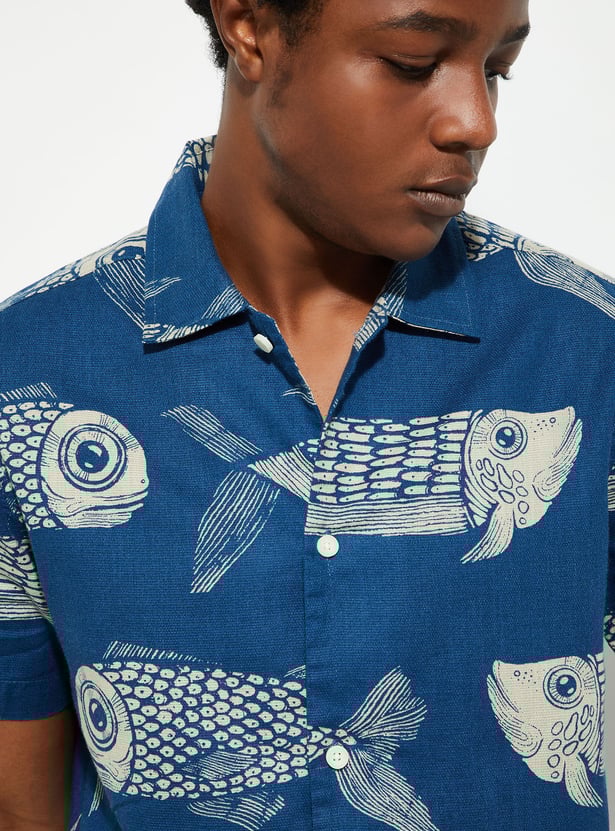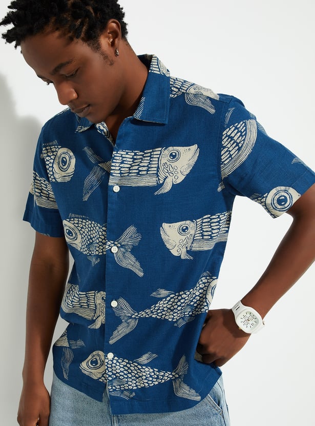 Step up your summer fashion game with this vibrant printed shirt. Featuring a sleek resort collar and breezy half sleeves, it’s the perfect blend of style and comfort for those warm days. This shirt is a versatile addition to your wardrobe, effortlessly elevating your casual looks.