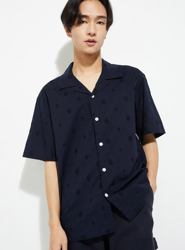 Make a stylish statement with this expertly tailored casual shirt. Featuring schiffli design, a resort collar, and short sleeves, it effortlessly combines sophistication with a laid-back vibe. Perfect for making a lasting impression.