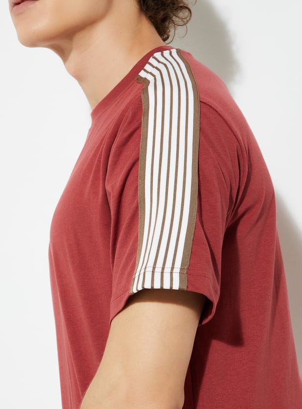 A drop that delivers style, this tee features bold stripes on sleeves and a crew neck. The soft fabric ensures maximum comfort.
