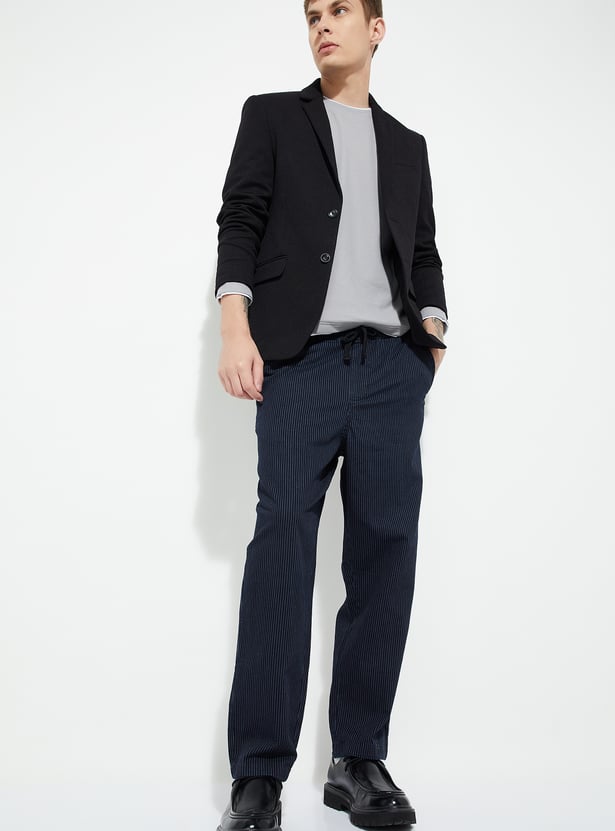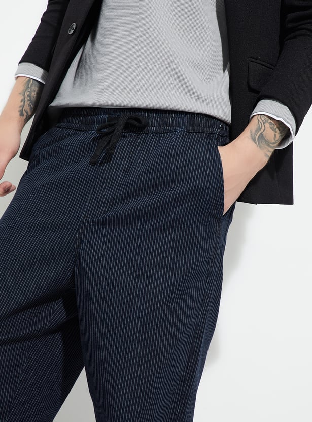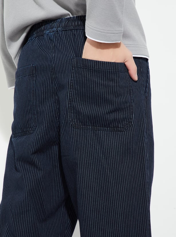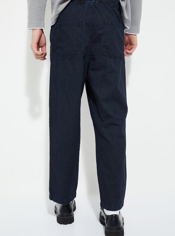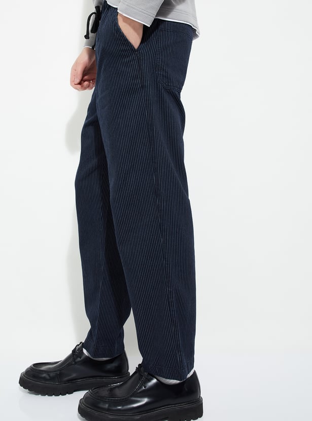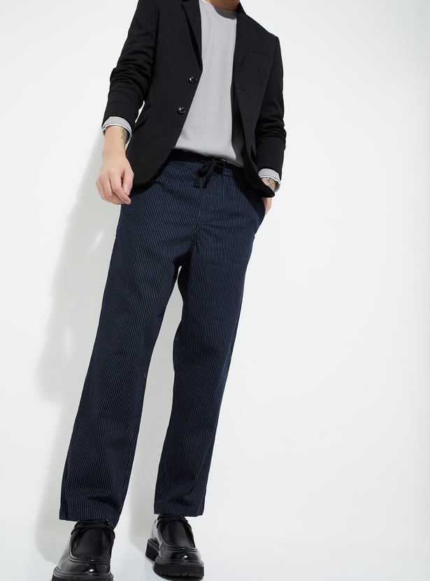Relaxed yet stylish, these striped loose-fit trousers feature a mid-rise waist, drawstring closure, and practical pockets for everyday comfort. The loose silhouette makes them breathable and versatile, perfect for casual wear or travel.