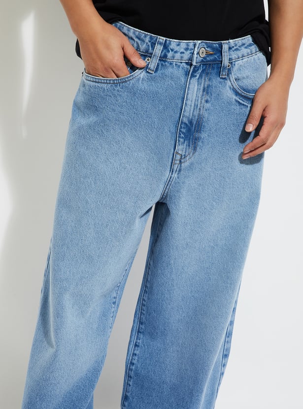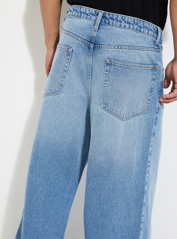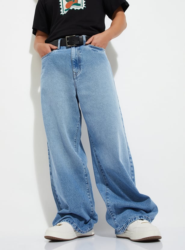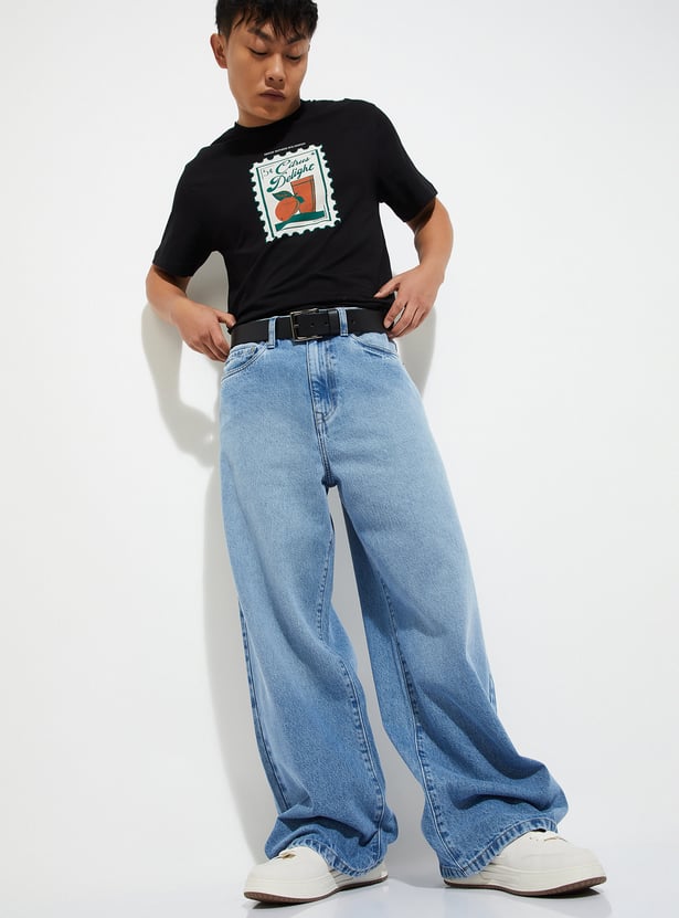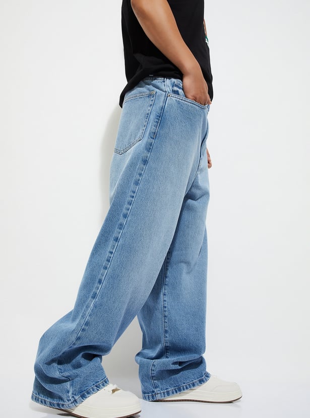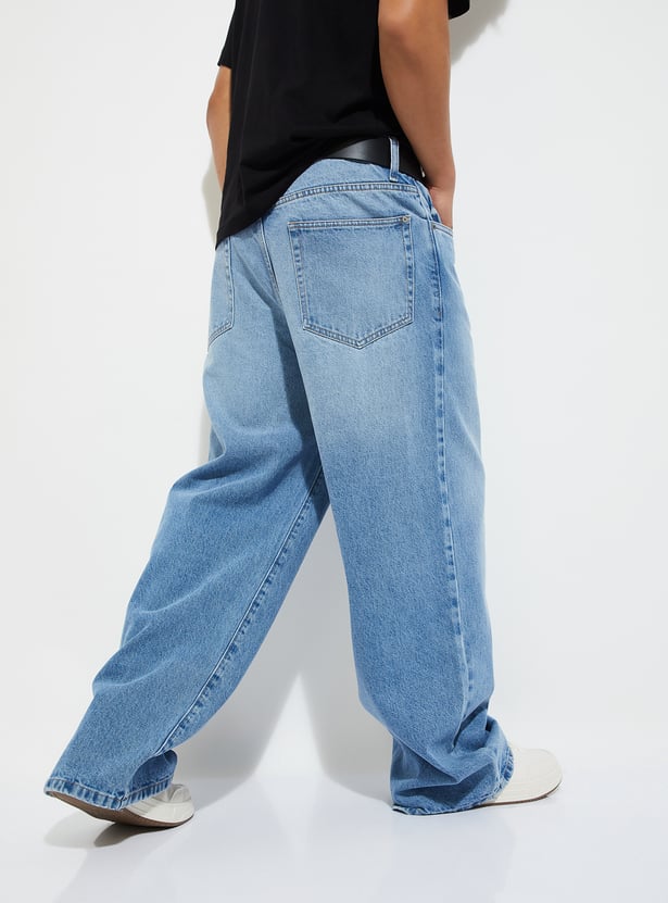 Upgrade your casual wardrobe with this pair of washed jeans designed for a relaxed style. Featuring functional pockets, belt loops, a baggy fit, and a loose hem for effortless everyday wear.