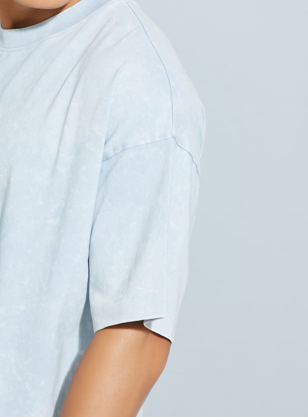 Effortlessly stylish, this washed boxy fit T-shirt features a classic crew neck and half sleeves, blending comfort with subtle detailing for an elevated casual look.