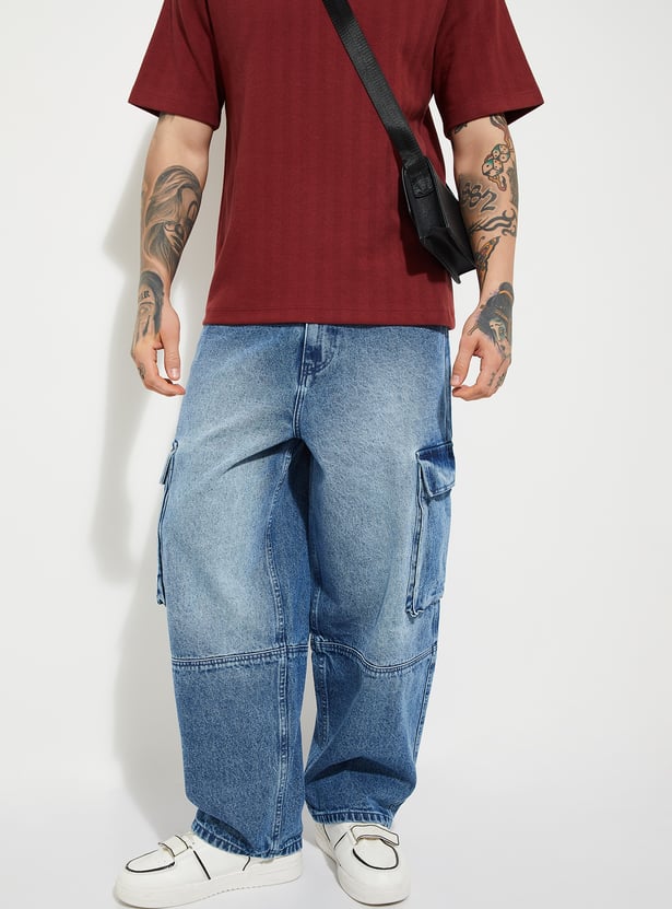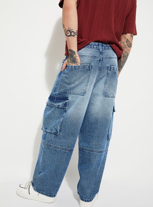 These washed loose fit cargo jeans feature a comfortable mid-rise, secure button closure, and classic belt loops. Multiple pockets add utility, while the relaxed silhouette delivers effortless street-style appeal.