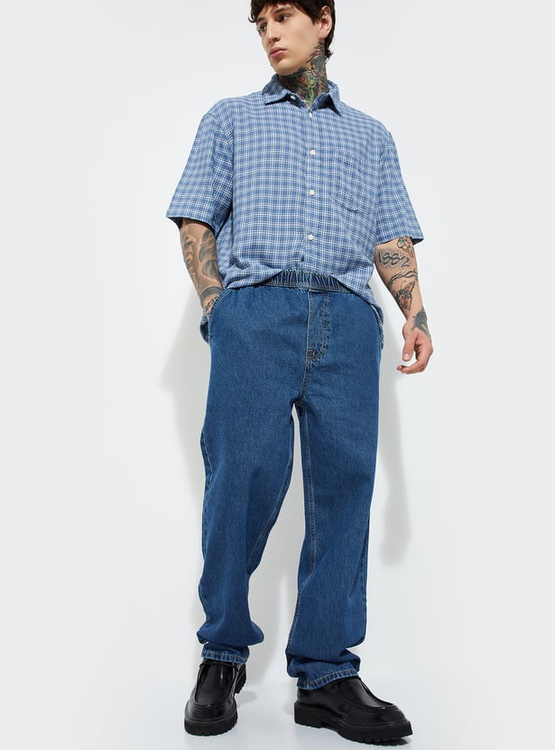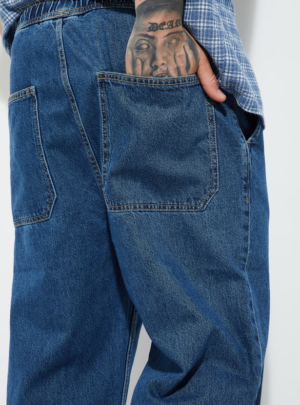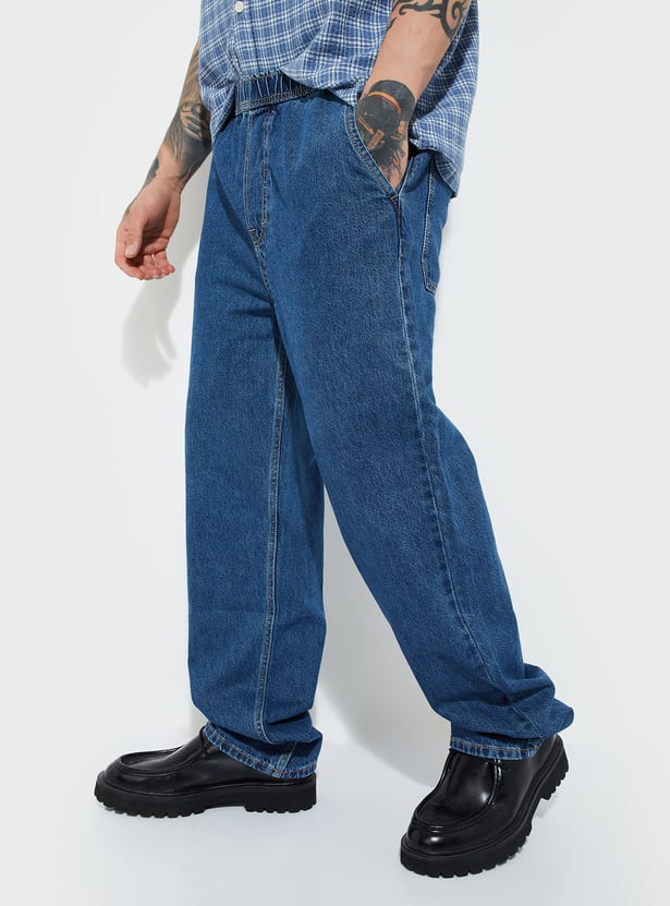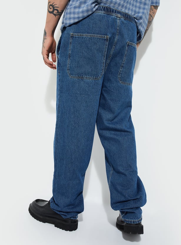 These washed loose fit jeans offer a laid-back vibe with all-day comfort. Designed with an elasticated closure, mid-rise, and four functional pockets, they combine ease of wear with everyday utility.