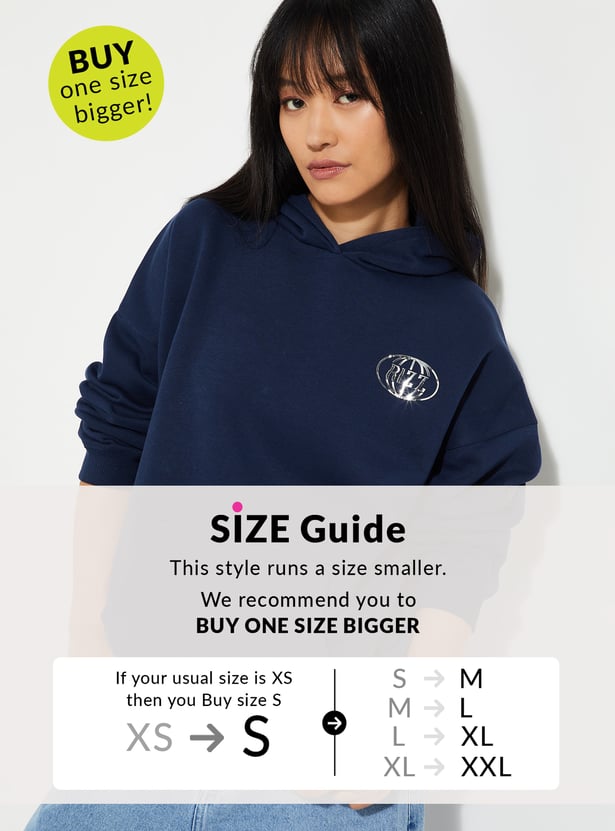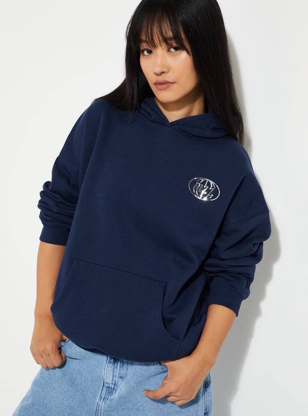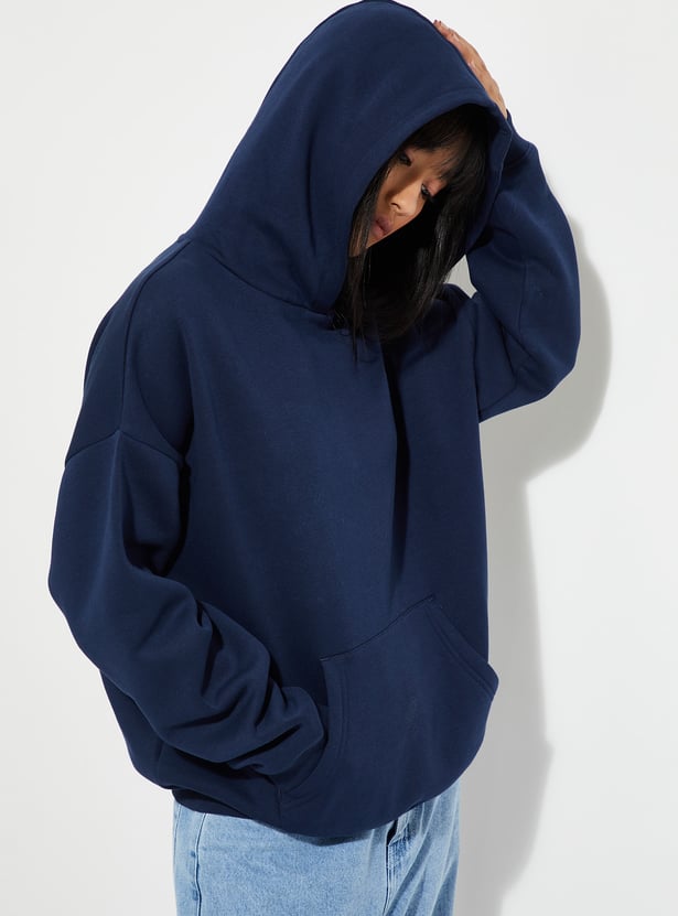 Stay cosy and stylish with this back print hooded oversized sweatshirt, featuring full sleeves and kangaroo pockets for convenience. The bold back print adds a trendy, casual edge to your everyday wardrobe.