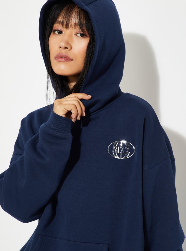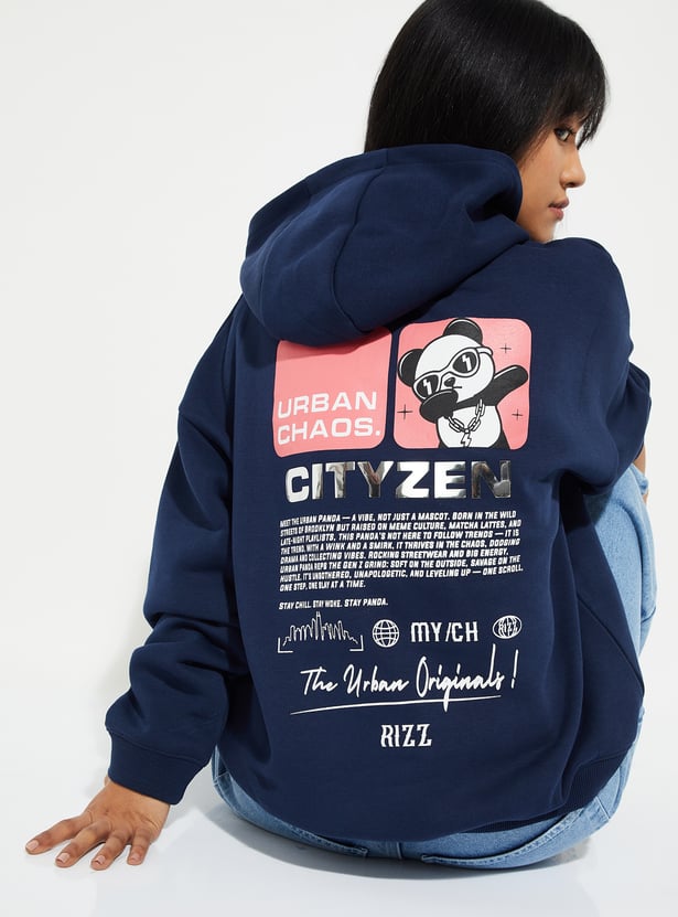URB_N Women Back Print Hooded Oversized Sweatshirt