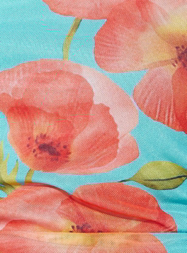 Let your style bloom with this bodycon dress. The ruched detailing lends a flattering look. It features vibrant prints, spaghetti straps, and a midi-length profile.