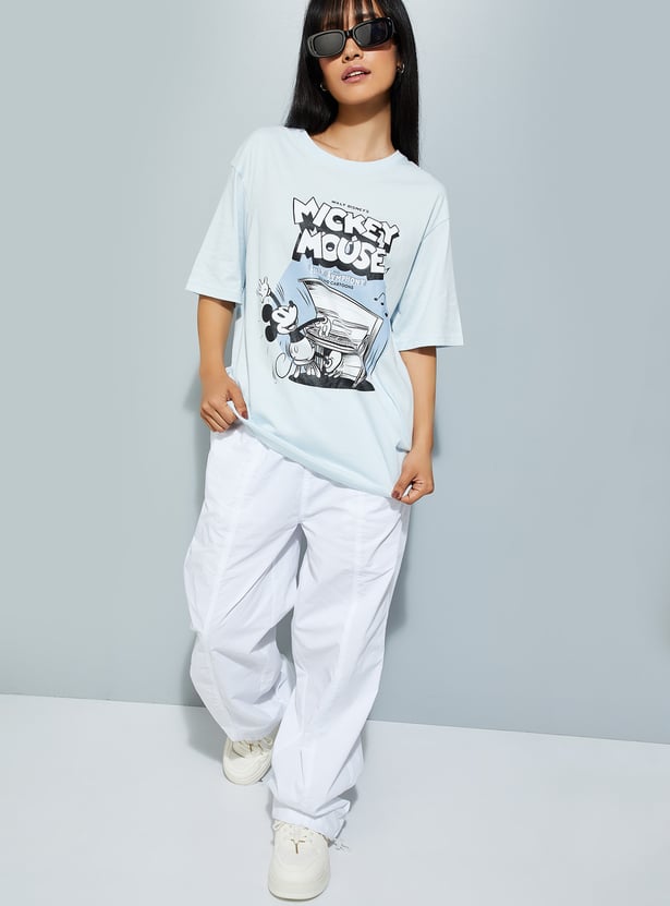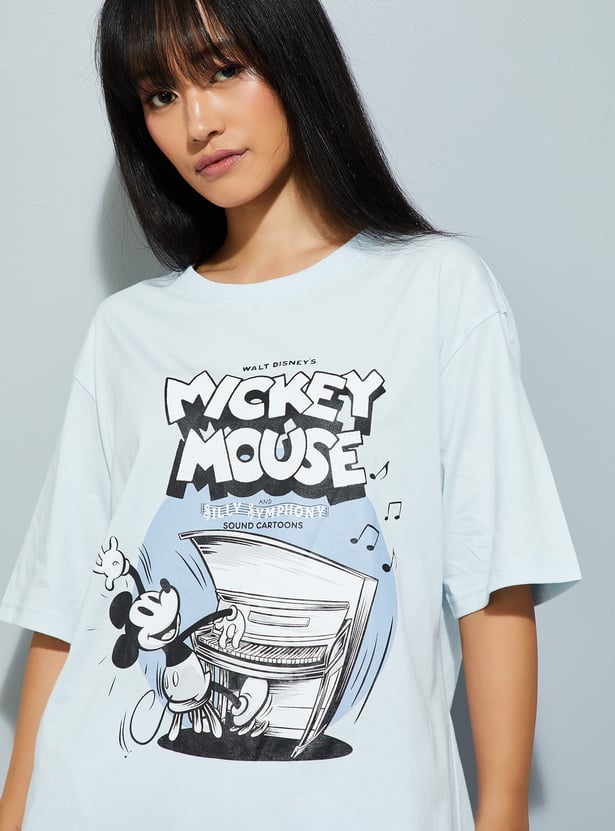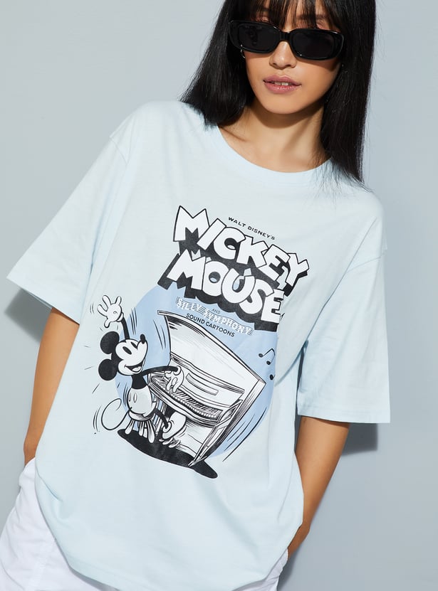 Show off your love for Mickey Mouse with this oversized print t-shirt, featuring a classic round neck and half sleeves for a relaxed, trendy fit. Perfect for casual outings or lounging in style, this tee blends comfort with nostalgic charm.