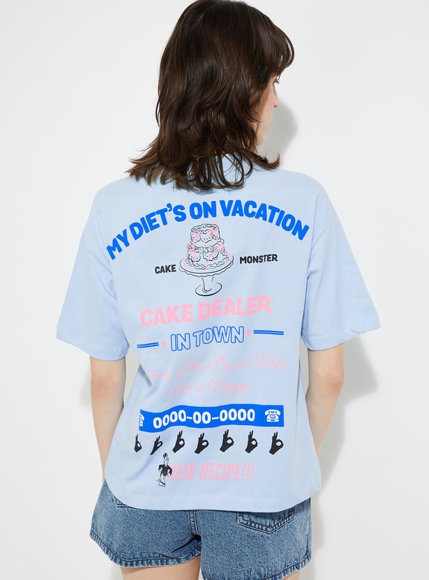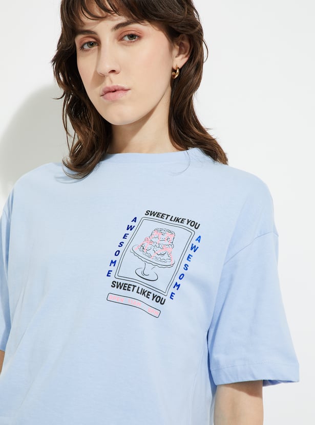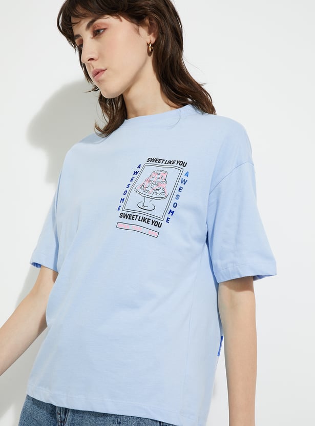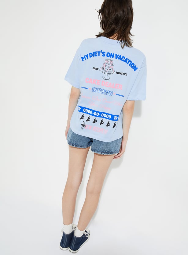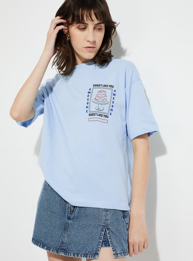 Show off your style with this printed oversized fit T-shirt. Designed with a classic round neck and half sleeves, it offers a relaxed silhouette that blends comfort with an effortlessly cool vibe.
