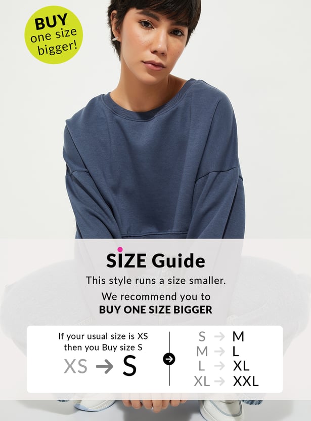 Keep it fresh and effortless with this sweatshirt. Designed for ultimate comfort, it features a boxy fit and crop profile. The solid tone with a round neck, drop shoulders, and full sleeves give it a clean, minimalist vibe.